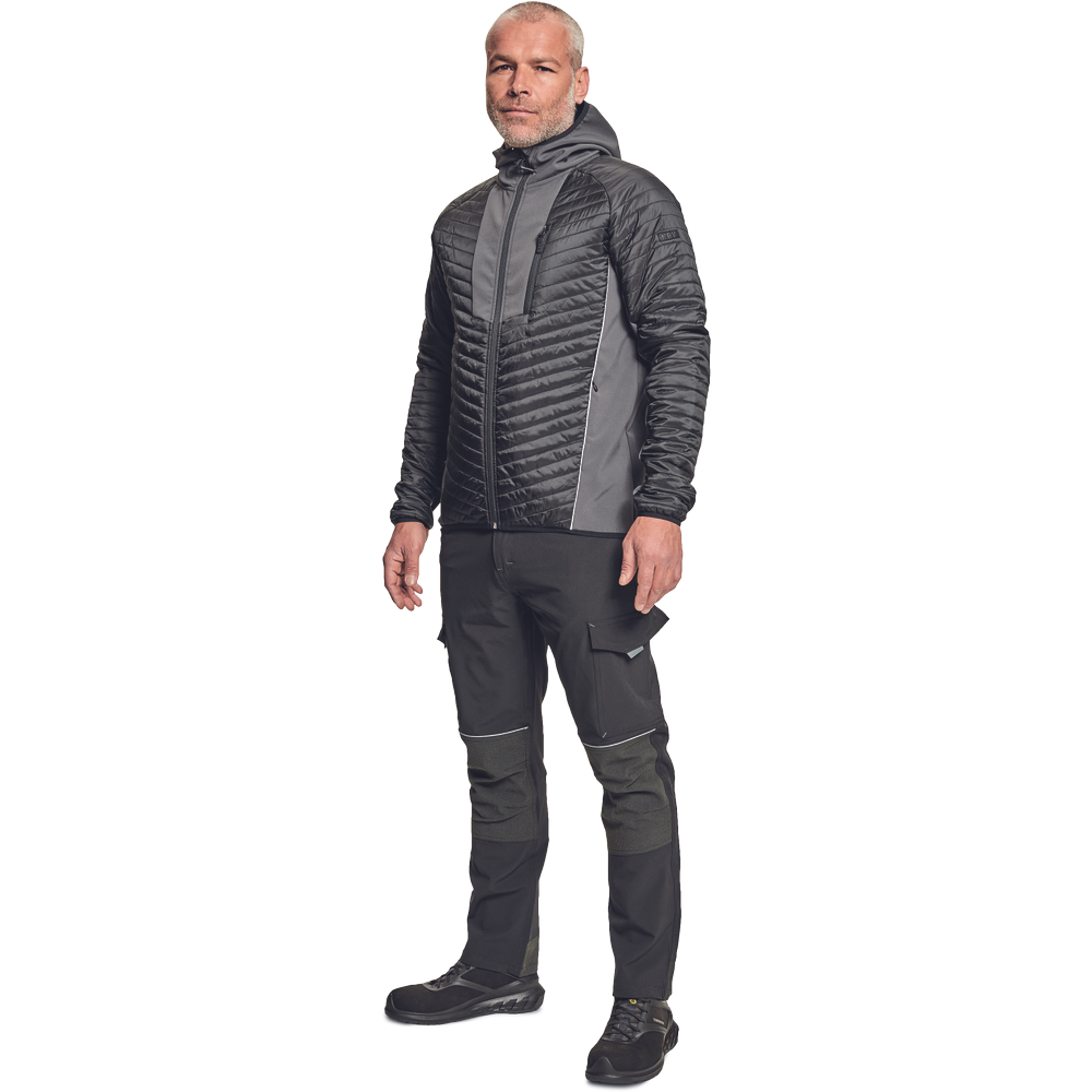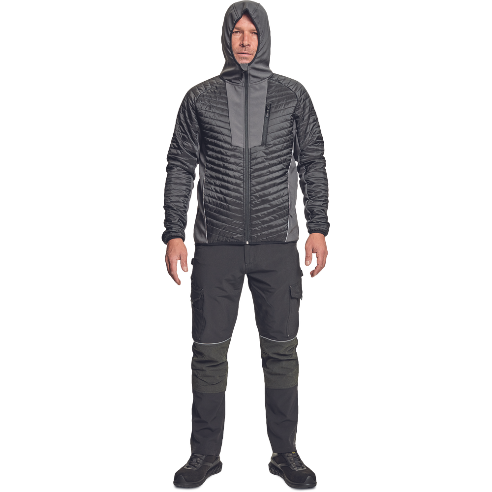 – moška izolirana jakna s kapuco – 2 stranska žepa z zadrgo – 1 prsni žep z zadrgo – 2 notranja žepa – elastični robovi rokavov, rob kapuce in spodnji del – odsevni elementi