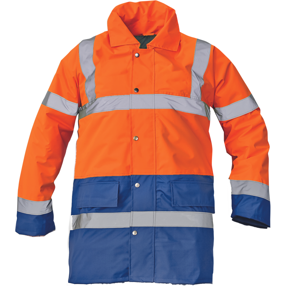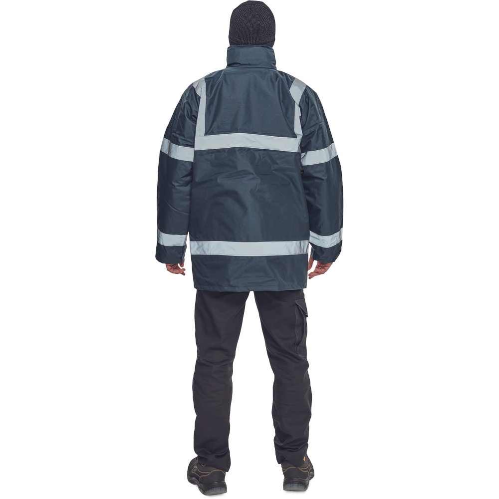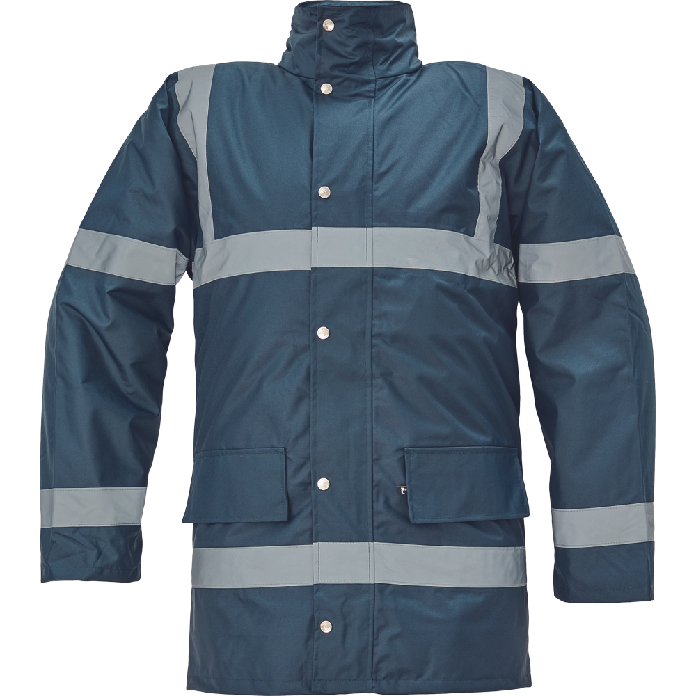 – moška nepremočljiva zimska jakna z integrirano kapuco, prepustna – odsevne črte na ramenih ter okoli prsi, bokov in rokavov – 2 velika sprednja žepa – notranje pletene manšete – jakna ima certifikat EN ISO 20471: To ne velja za 50 kraljevsko modro in 41 mornarsko barvo.