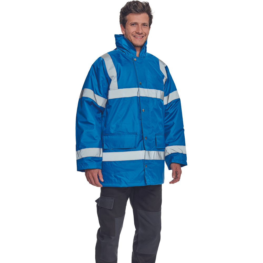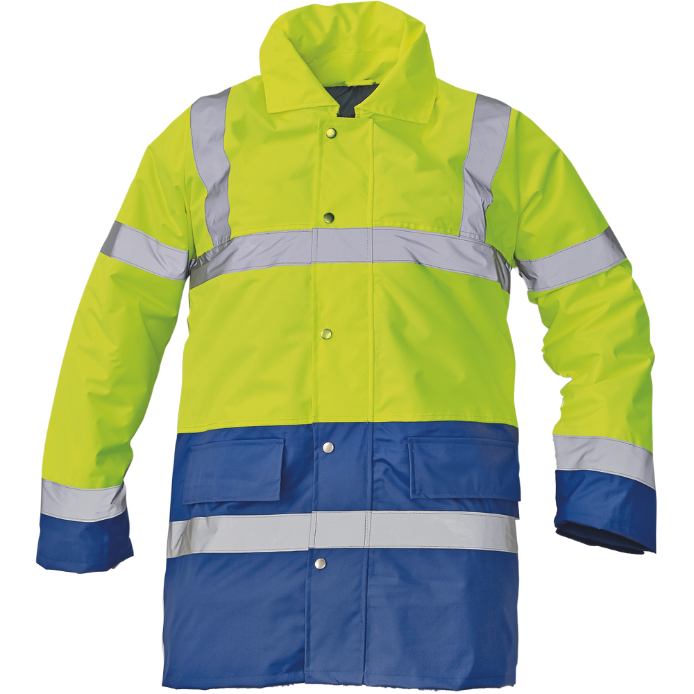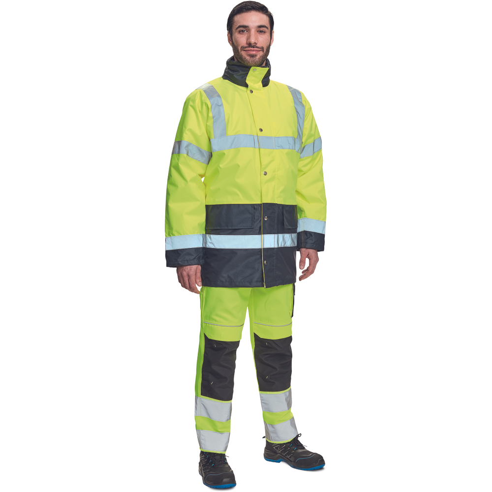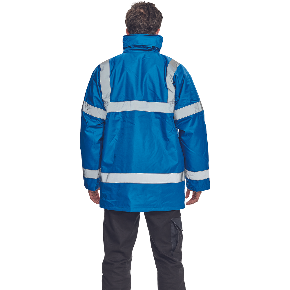 – moška nepremočljiva zimska jakna z integrirano kapuco, prepustna – odsevne črte na ramenih ter okoli prsi, bokov in rokavov – 2 velika sprednja žepa – notranje pletene manšete – jakna ima certifikat EN ISO 20471: To ne velja za 50 kraljevsko modro in 41 mornarsko barvo.
