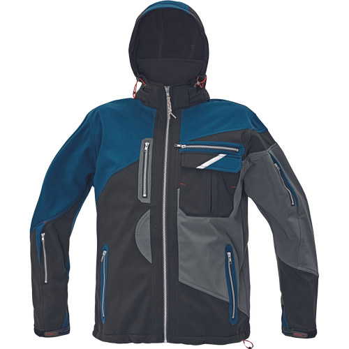 – moška jakna s tehnično zasnovo in snemljivo kapuco – 2 stranska žepa z zadrgo – 2 prsna žepa z zadrgo – 1 žep na prsih – še en žep z zadrgo na vsakem rokavu – notranji žepi za telefon z zadrgo – odsevni trak na prsnem žepu – nastavljiv spodnji rob z gumijasto vrvico – nastavljiv rokav z velcro in gumijastim trakom, vključno z logotipom ASSENT – ojačan vizir na kapuci