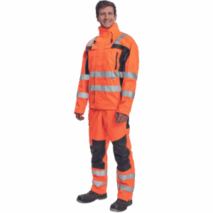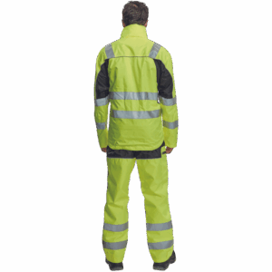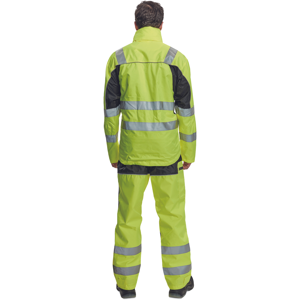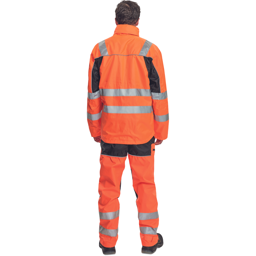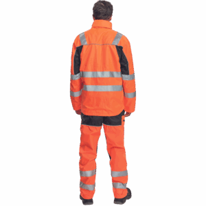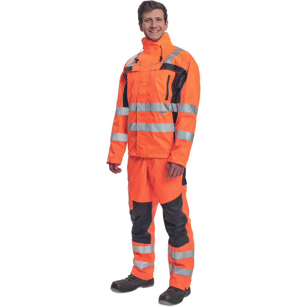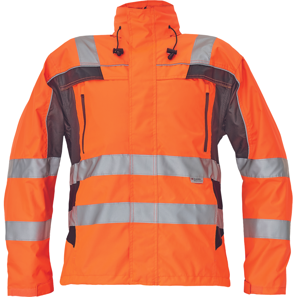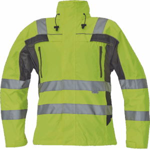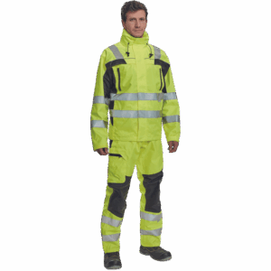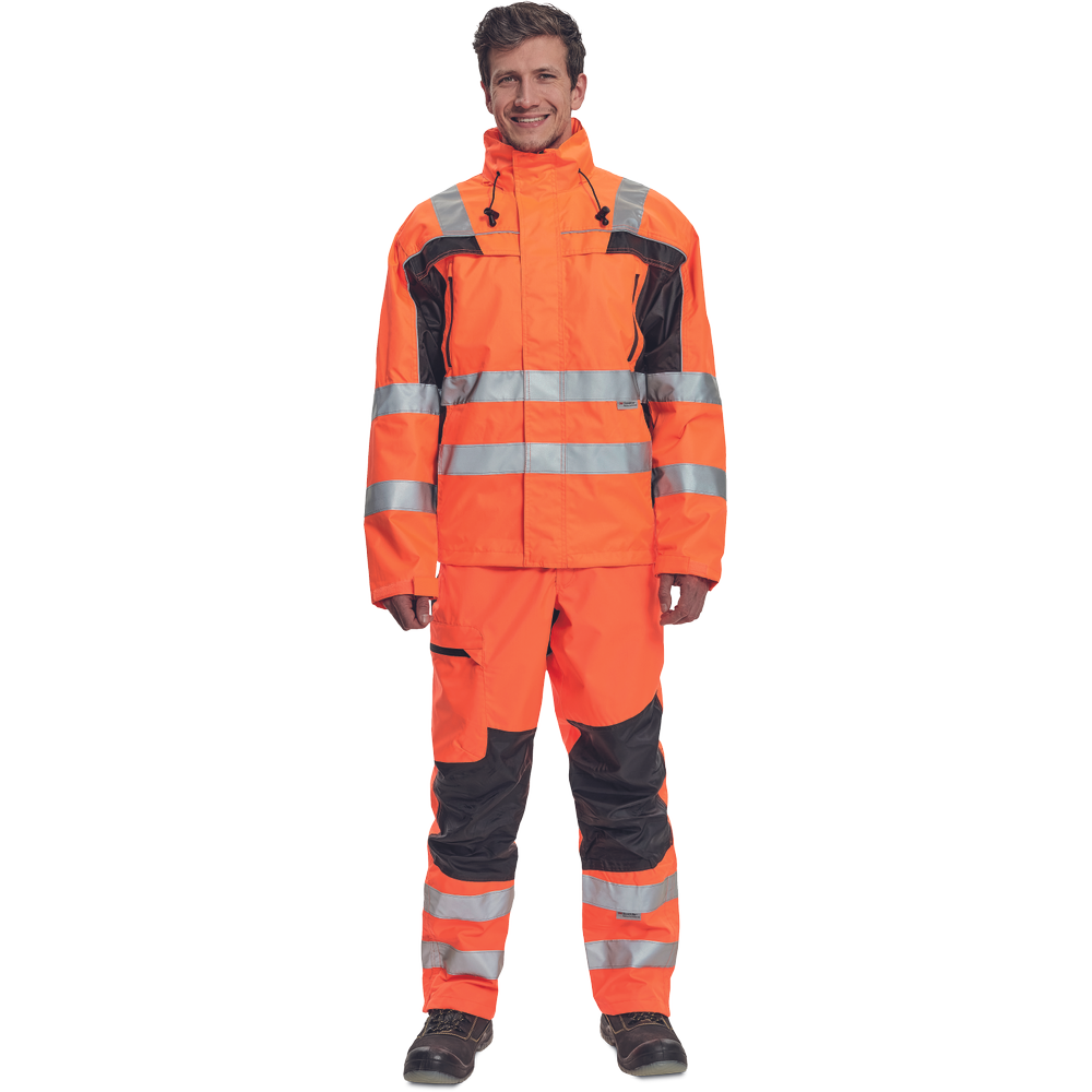 – moška nepremočljiva jakna HI-VIS z integrirano kapuco v ovratniku in podlogi – odsevne črte na bokih in rokavih – zatesnjeni šivi, vodoodpornost in prepustnost za paro – 2 stranska žepa, 2 prsna žepa – nastavitev robov rokavov na velcro