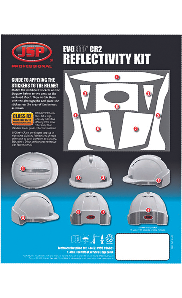 Odsevni elementi razreda R2 so izdelani iz visoko intenzivnega odsevnega materiala, ki ima v povprečju 60 % večjo odsevnost kot standardni odsevni elementi; obdelava z odsevnimi nalepkami CR2 poveča vidnost čelade pri osvetlitvi na razdalji več kot 300 metrov; EN 12899-1