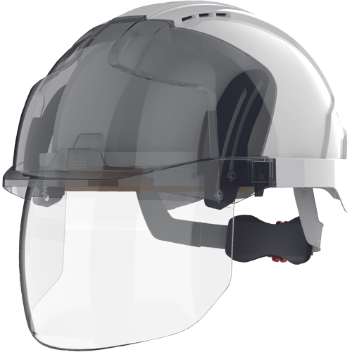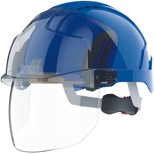 Varnostna čelada EVO® VISTAshield® z integriranim obraznim ščitnikom je naslednja generacija varnostnih čelad z bogatimi funkcijami, ki temelji na preizkušeni tehnologiji zaščite glave Evolution® in vključuje popolnoma izvlečni integrirani obrazni ščitnik optičnega razreda 1 z odpornostjo proti udarcem razreda A. Očala so zamenljiva, tako da lahko uporabniki zamenjajo ščitnik z nadstandardnim ščitnikom VISTAlens® in tako zagotovijo ustrezno zaščito, ko jo potrebujejo.