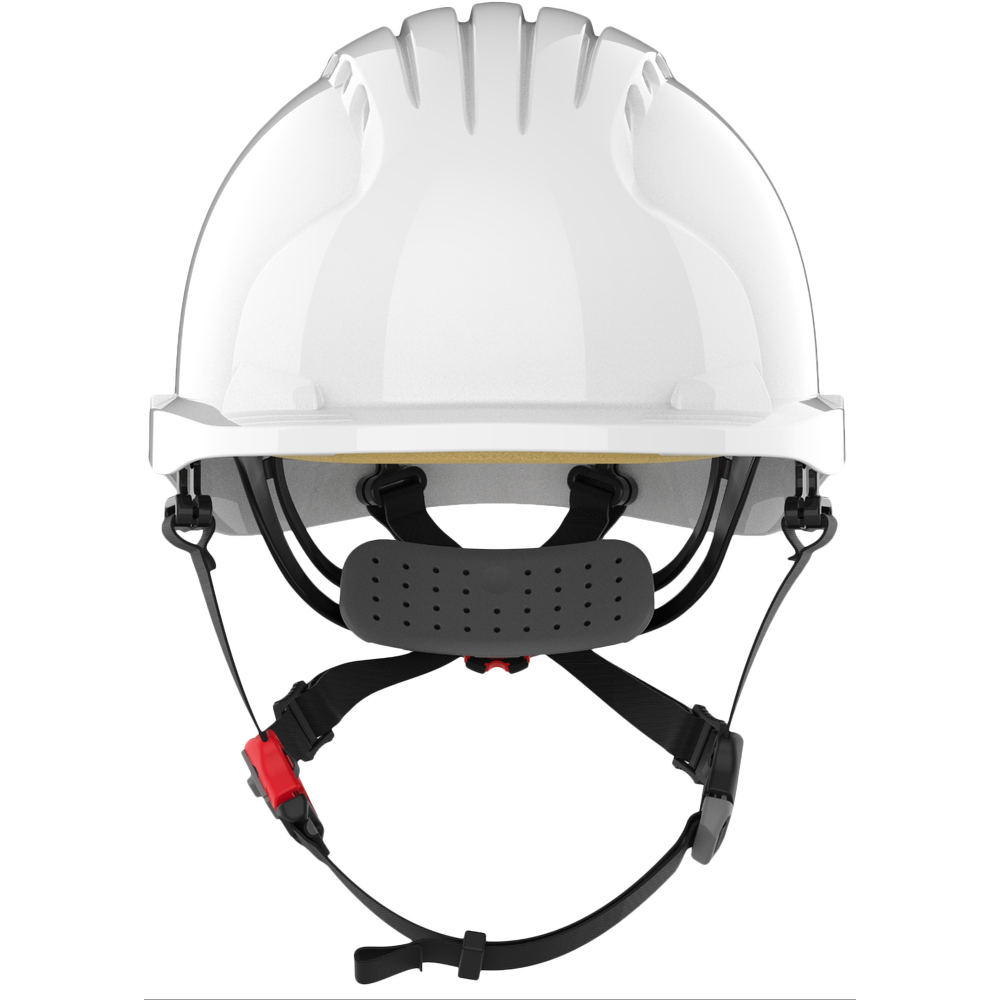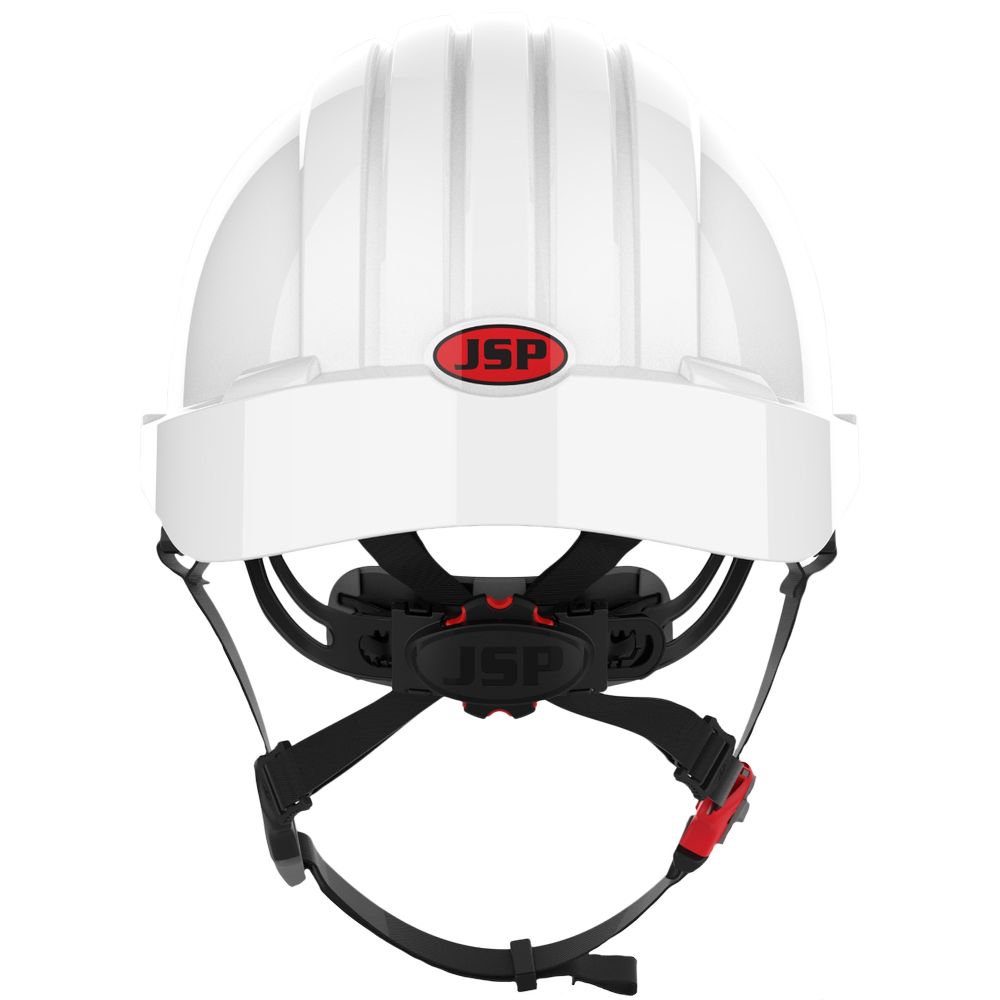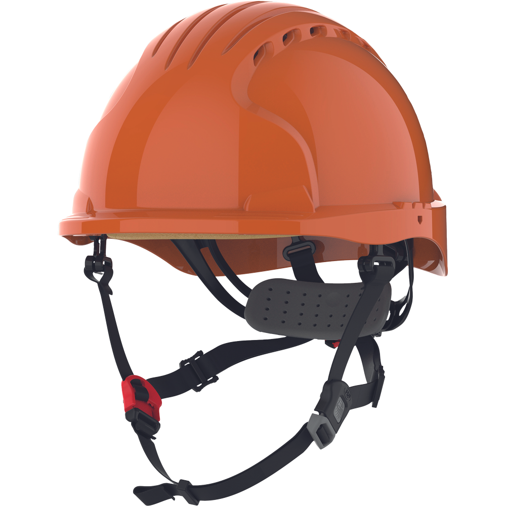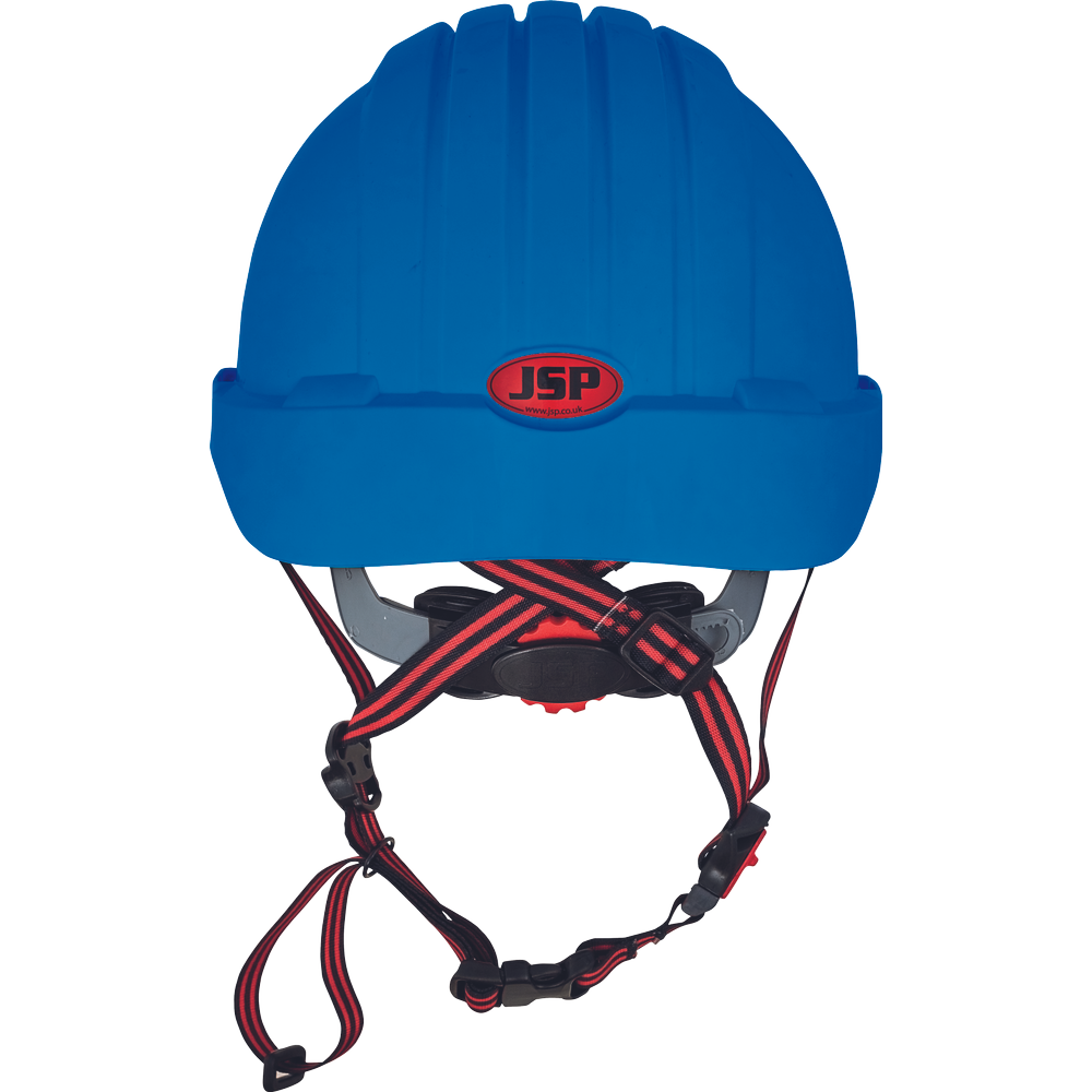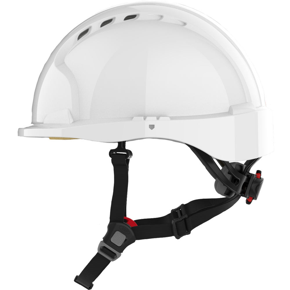 Varnostna čelada EVO®5 DualSwitch™ podjetja JSP je v celoti certificirana za standarda EN 397 in EN 12492; omogoča enostavno menjavo med obema standardoma s preprostim preklopom traku UP za EN 397 in EN 50365:2002 ter preklopom traku DOWN za EN 12492 in EN 50365:2002; sila sprostitve traku za brado v skladu z EN 12492 je večja od 500 njutonmetrov, kar zmanjšuje tveganje izgube čelade v primeru padca; sila sprostitve traku za brado v skladu z EN 397 je 150 do 250 njutonmetrov; to pa zmanjšuje tveganje zadušitve; trak za brado je zasnovan tako, da se v primeru ujetja sprosti