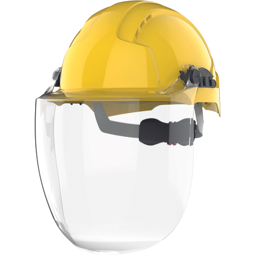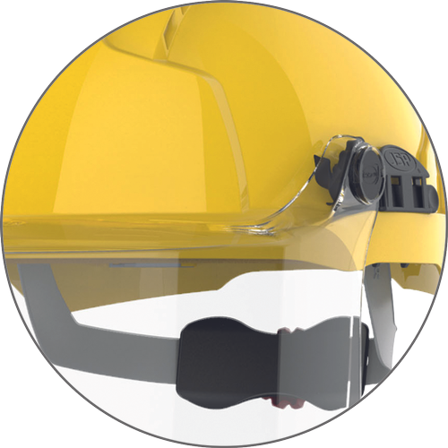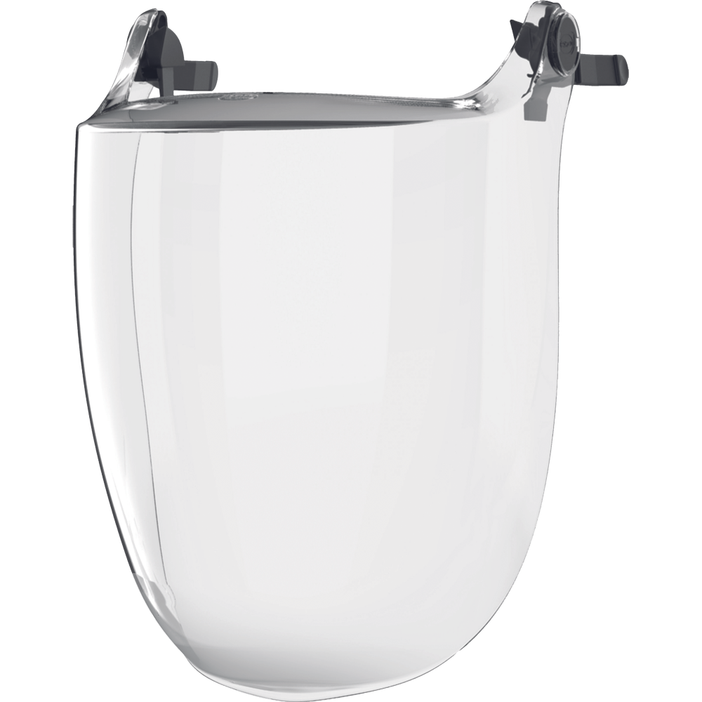 Industrijski vizir EVOGuard®C4 MAX je združljiv s sistemi za zaščito obraza JSP EVOGuard® in čeladami EVO®, razen s serijo EVO®6100; vizir JSP EVOGuard se lahko uporablja tudi s polmaskami JSP, respiratorji, očali na recept in slušalkami Sonis®, nameščenimi na čeladi; optični razred 1 zagotavlja panoramski vid, primeren za celodnevno uporabo; zaščita pred udarci A pri nošenju na čeladi; zaščita pred brizganjem; dolžina: 21,5 cm