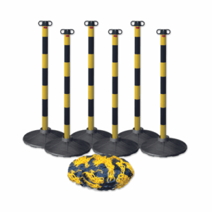 Extended posts complete with chain support caps. Made from UV stabilised polyethylene. Height with base: 1 m
