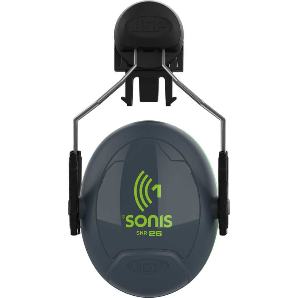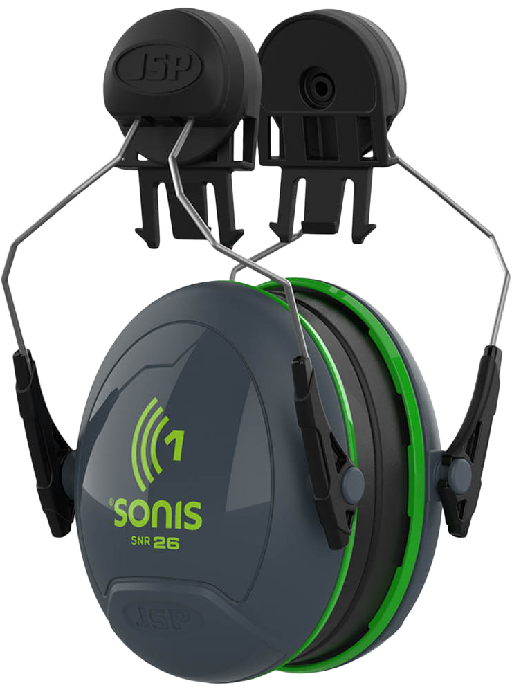 Zaščitniki ušes Sonis® 1, nameščeni na čelado, imajo stopnjo 26 SNR. Optimalna namestitev ščitnika ter optimalno udobje in porazdelitev pritiska. Enostavno vzdrževanje tesnilnih blazinic in tesnilnih obročkov, napolnjenih s PET in peno. Pokrovčke Sonis® je mogoče obarvati, da ustrezajo korporativni identiteti. Lahko se tudi natisnejo z logotipom podjetja za boljšo prepoznavnost blagovne znamke in preprečevanje kraje. Velja MOQ. Univerzalne reže čelad JSP omogočajo enostavno namestitev ščitnikov za ušesa Sonis® skupaj s sistemom vizirja JSP Surefit™ za maksimalno zaščito.