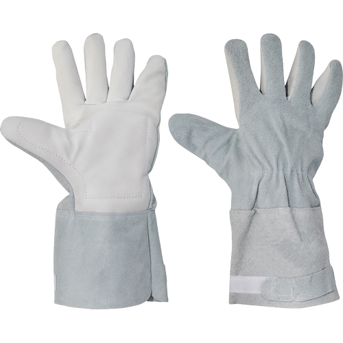 – usnjene antivibracijske rokavice – kombinacija mehkega govejega in cepljenega usnja – ohlapna manšeta – bombažna podloga