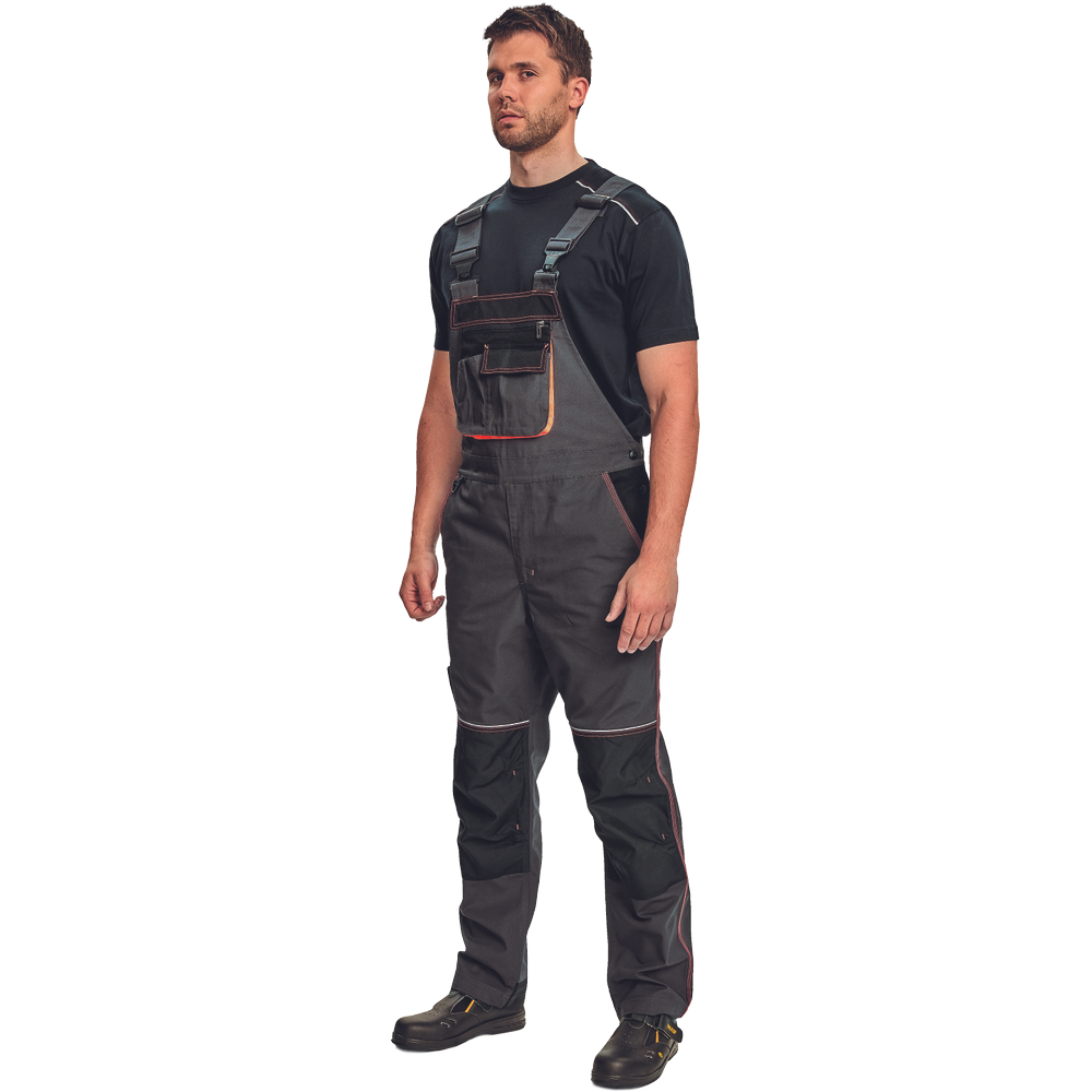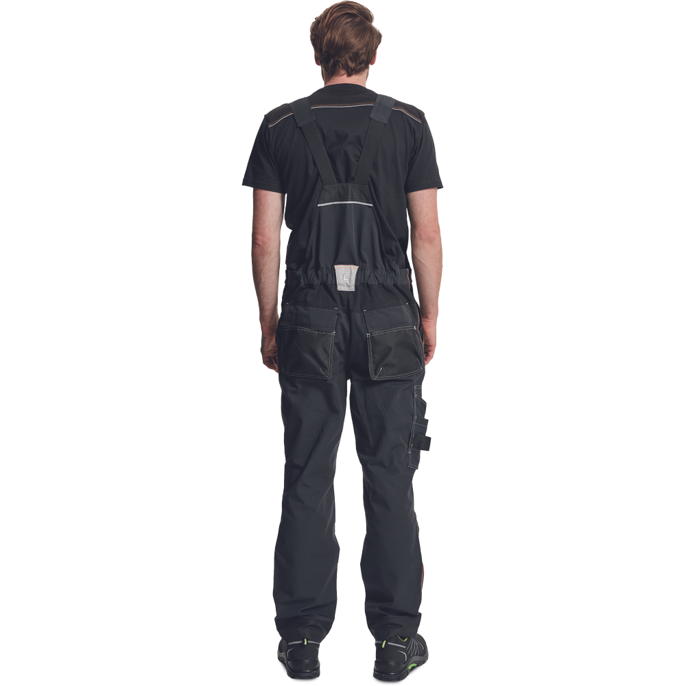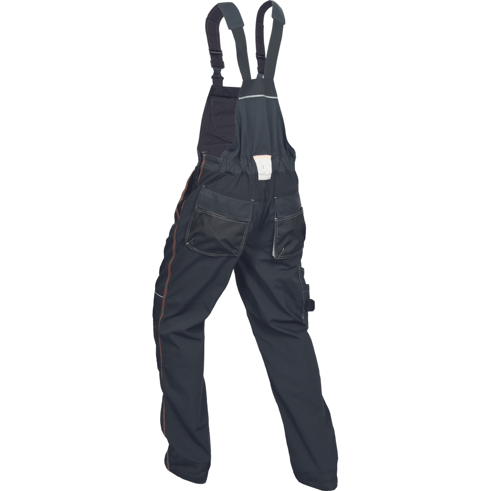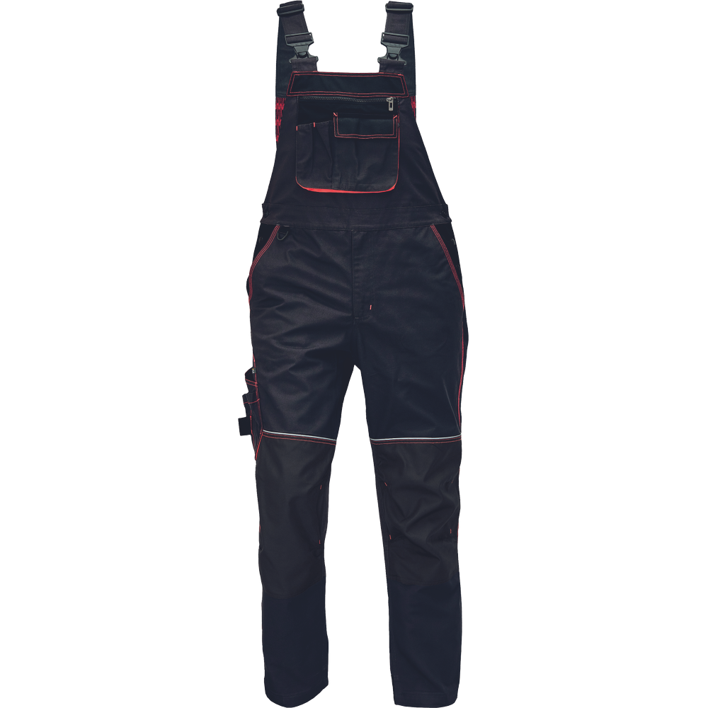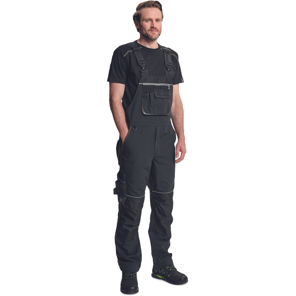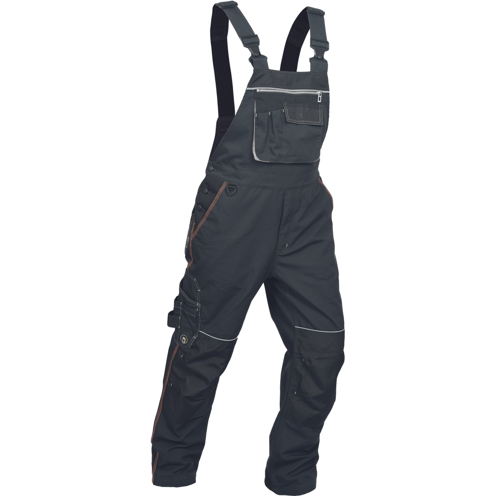 – Visokokakovostne moške delovne hlače z naprsnikom, elastičnimi naramnicami in pasom – 6 funkcionalnih žepov – ojačani deli kolen 600D Oxford za vstavljanje kolenskih blazinic – podaljšana dolžina nog – okrasni šivi in kontrastni detajli v barvi HI-VIS – odsevni robovi
