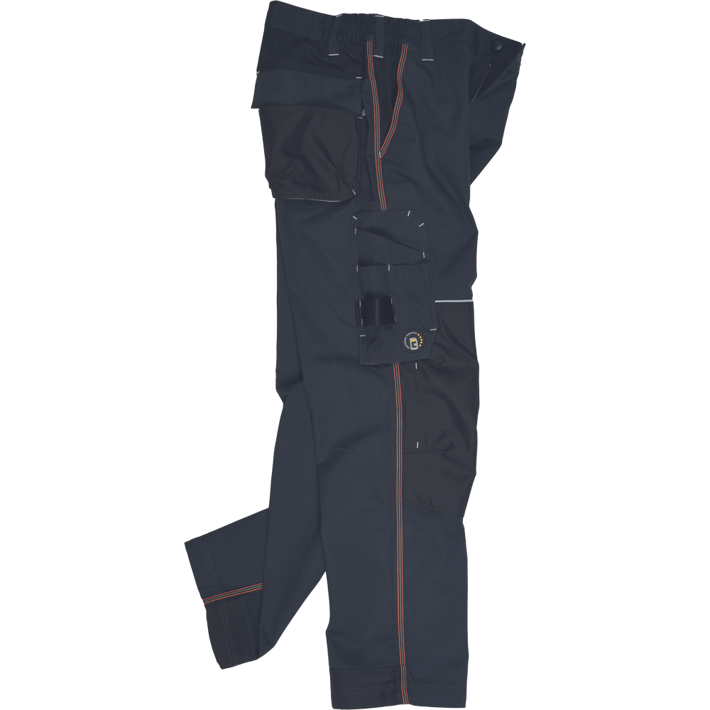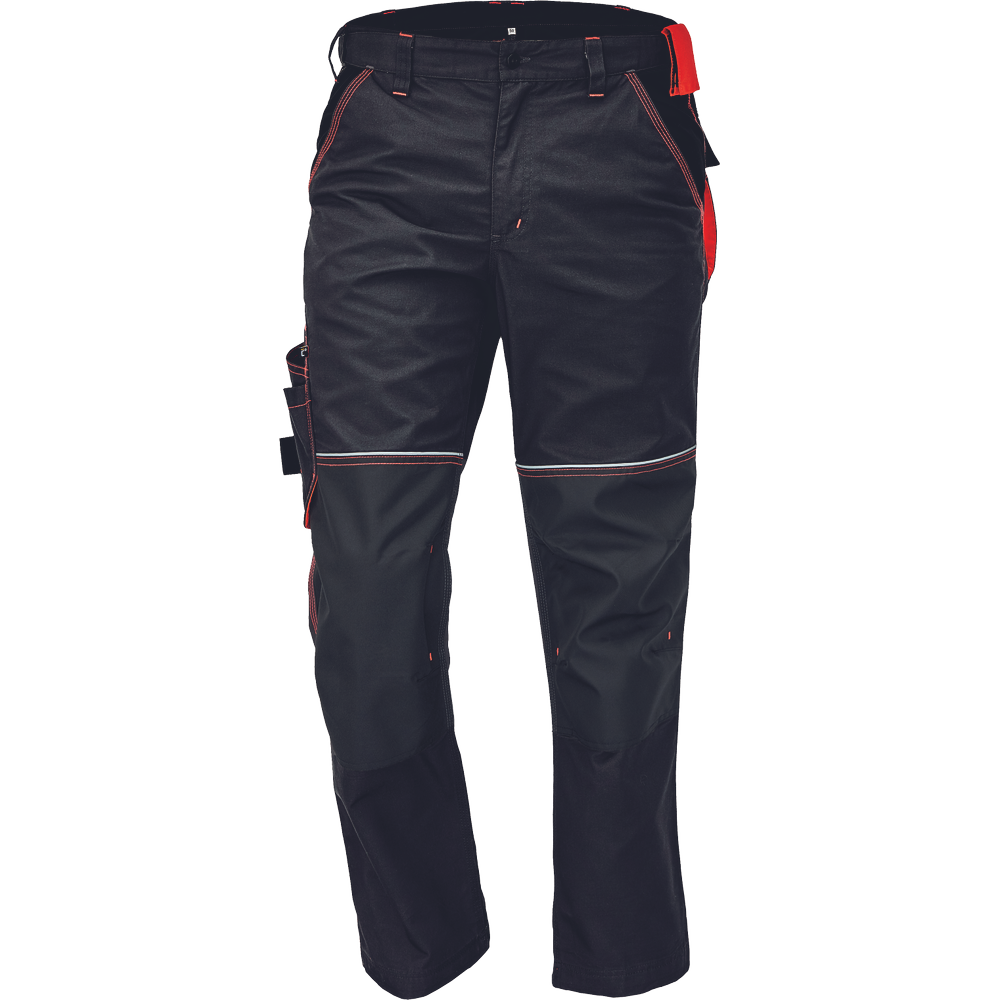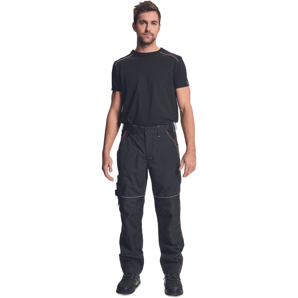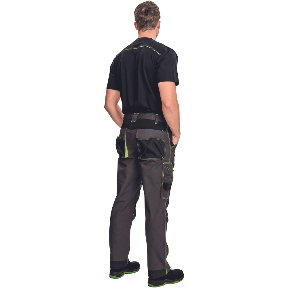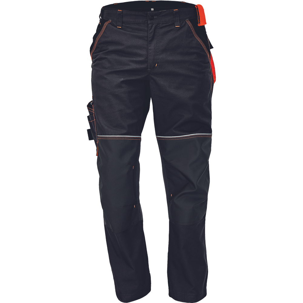 – Visokokakovostne moške delovne hlače z elastičnim pasom – 5 funkcionalnih žepov – ojačani kolenski deli iz oksforda 600D za vstavljanje kolenskih blazinic – podaljšana dolžina nog – okrasni šivi in kontrastni detajli v barvi HI-VIS – odsevni robovi