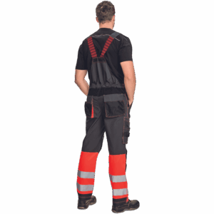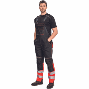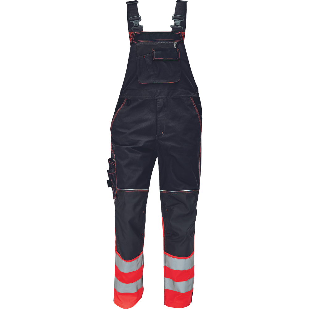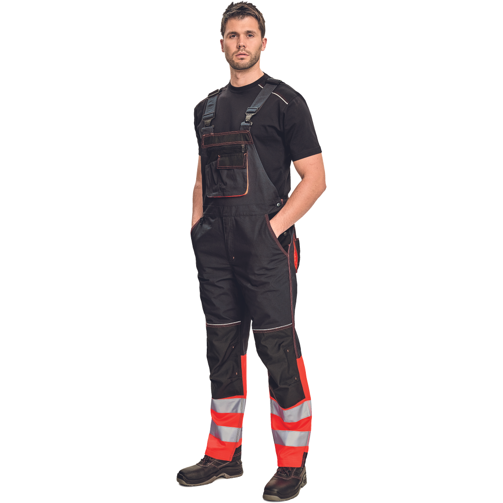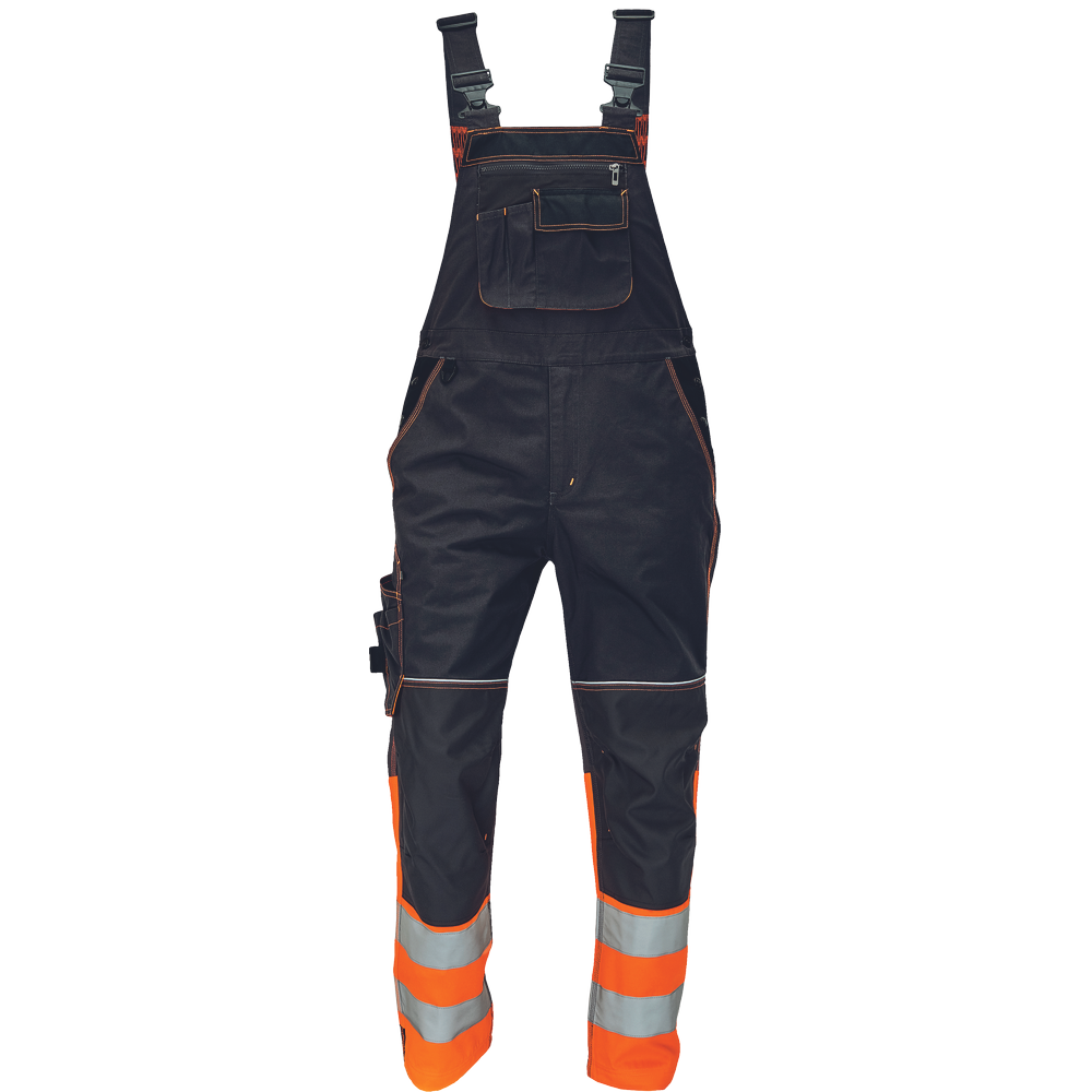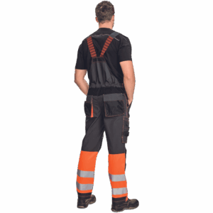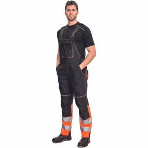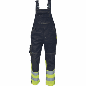 – visokokakovostne moške delovne hlače z naprsnikom v kombinaciji s tkanino HI-VIS na spodnjem delu nog in dvema odsevnima črtama – elastični naramnice in pas – 6 funkcionalnih žepov, 600D Oxford ojačeni deli kolen za vstavljanje kolenskih blazinic – podaljšana dolžina nog 5 cm – okrasni šivi in kontrastni detajli v barvi HI-VIS