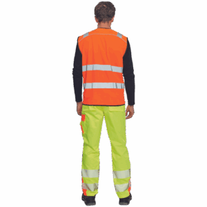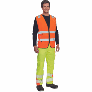 – HI-VIS jopič z dvema odsevnima črtama okoli telesa in čez ramena – zapiranje na zadrgo – 2 stranska žepa