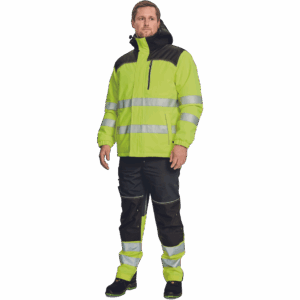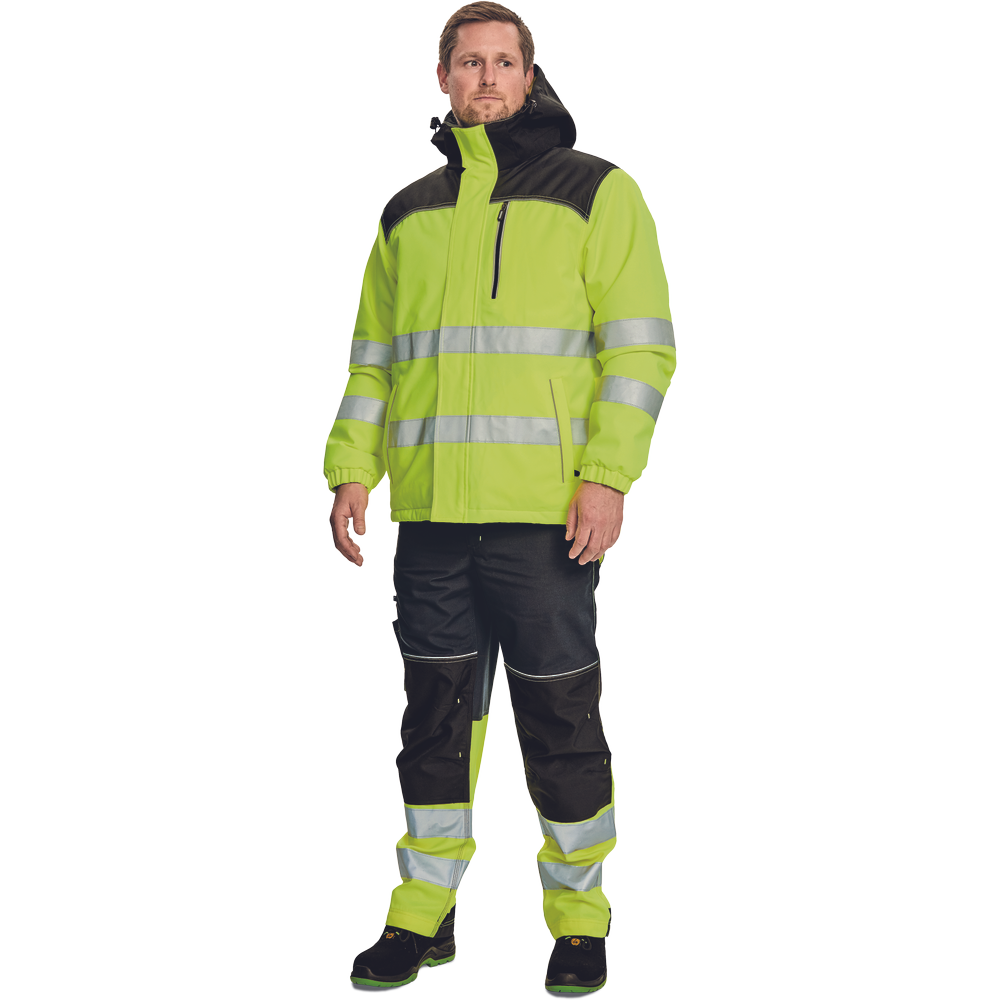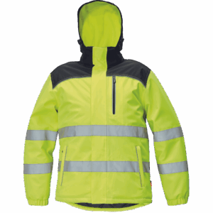 – oblazinjena zimska jakna HI-VIS s snemljivo kapuco, TPU membrana – podaljšan hrbtni del – ojačana ramena – 1 prsni žep z zadrgo v kontrastni barvi – 2 stranska žepa, 2 zapiralna notranja žepa – nastavljiv spodnji del z vrvico – sedlo in žepi podloženi z odsevnimi trakovi – okrasni šivi – možnost vezenja ali tiskanja
