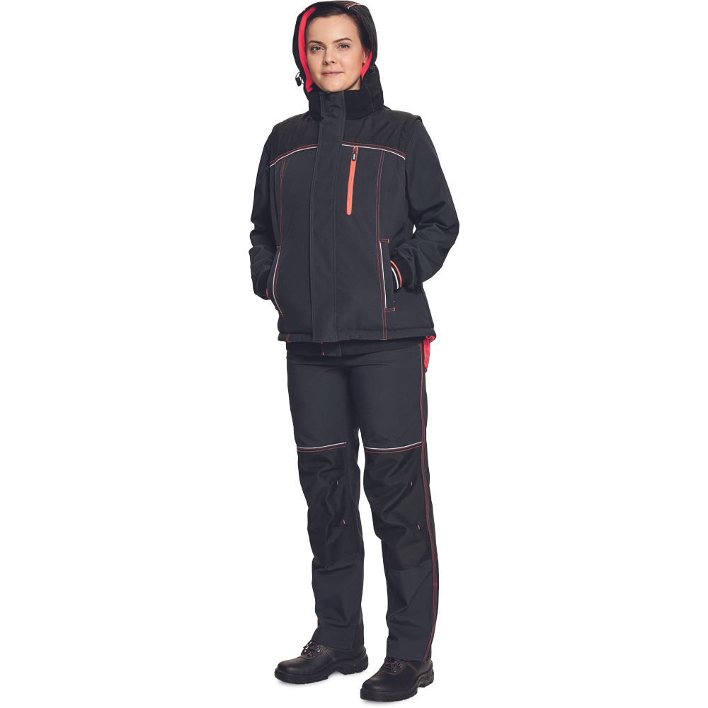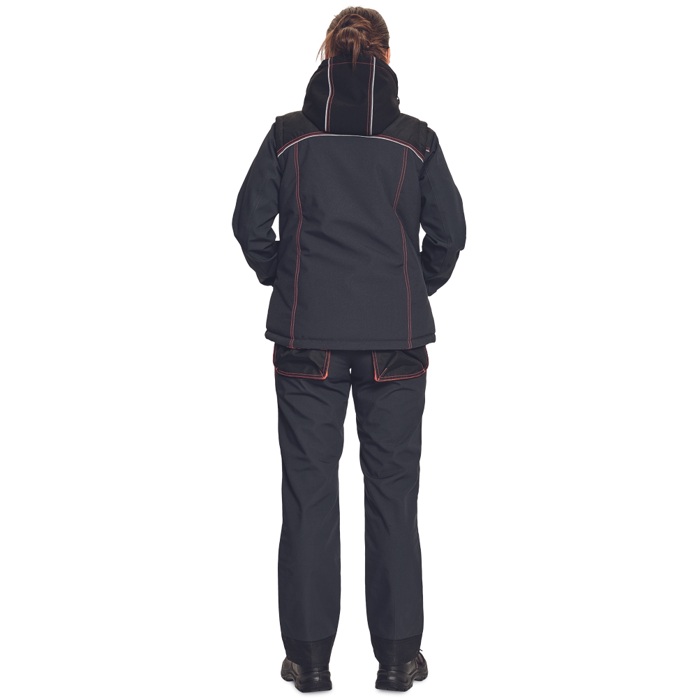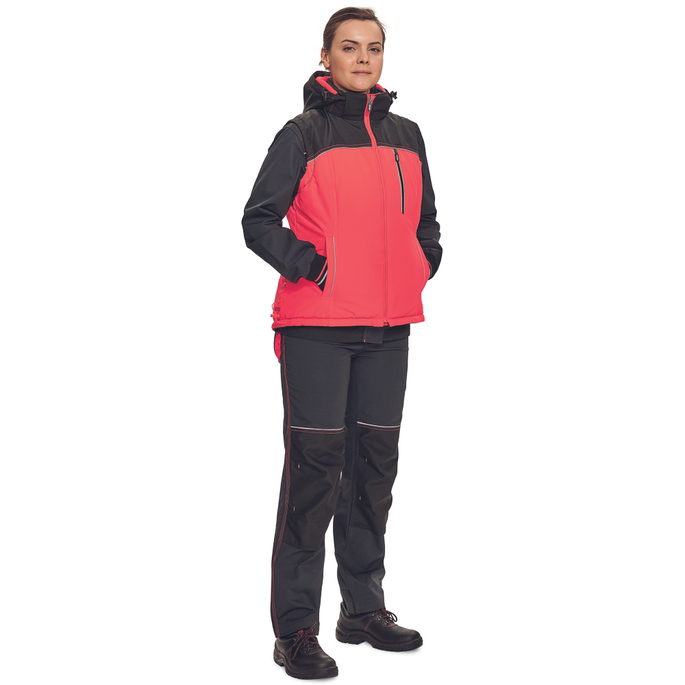 – Reverzibilna ženska jopa s snemljivo kapuco, TPU membrana – ojačani ramenski deli Oxford 300D – 1 prsni žep z zadrgo – 2 stranska žepa – sedlo in žepi obrobljeni z odsevnimi trakovi – dvoslojna kapuca s podlogo iz flisa – vrvica na spodnjem robu in robu kapuce