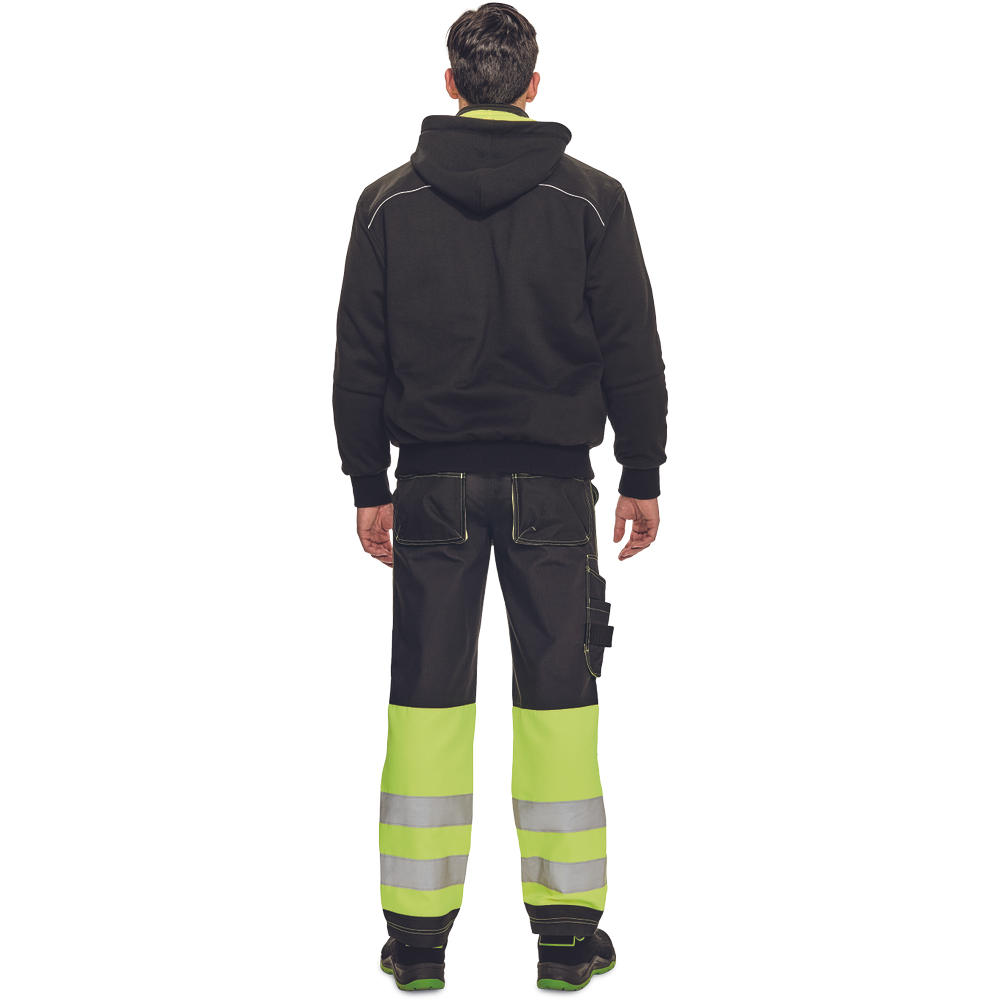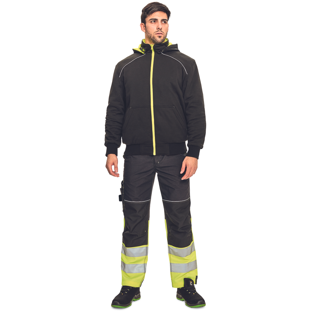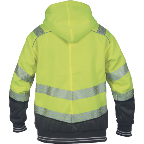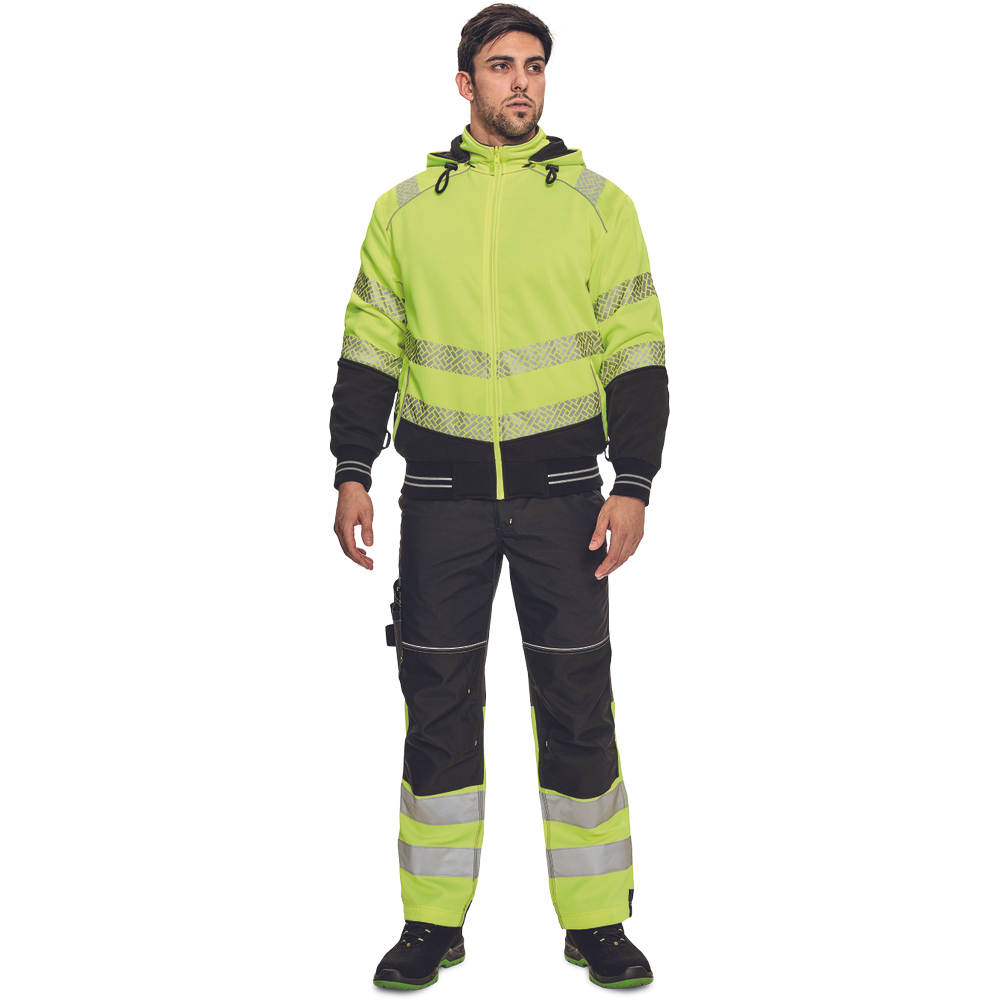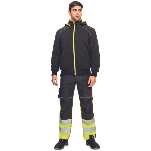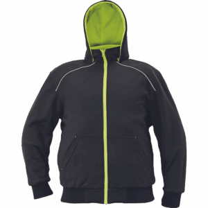 – moška reverzibilna kapuca HI-VIS z zadrgo in snemljivo kapuco – odsevne črte in cevi – 2 stranska žepa – elastični spodnji robovi in rokavi – druga različica v črni barvi s kengurujskim žepom in odsevnimi cevmi – EN 20471 (razred 3) velja za velikosti M-5XL – EN 20471 (razred 2) velja za velikosti XS-S