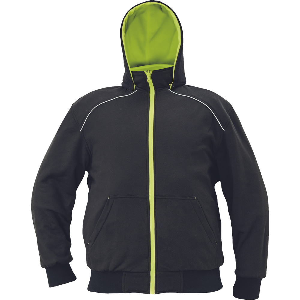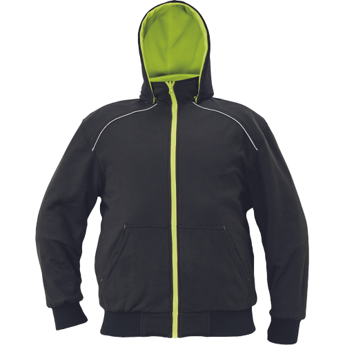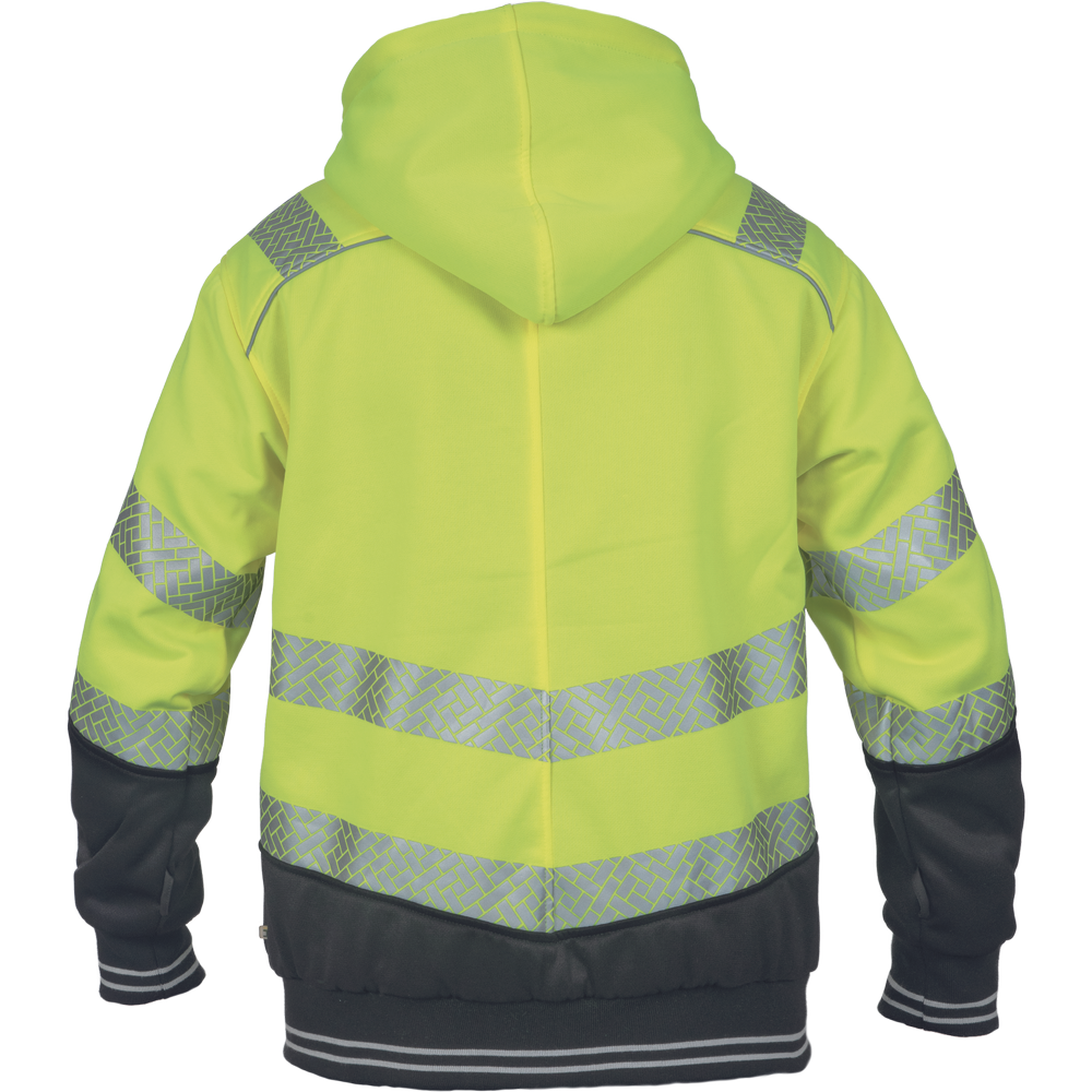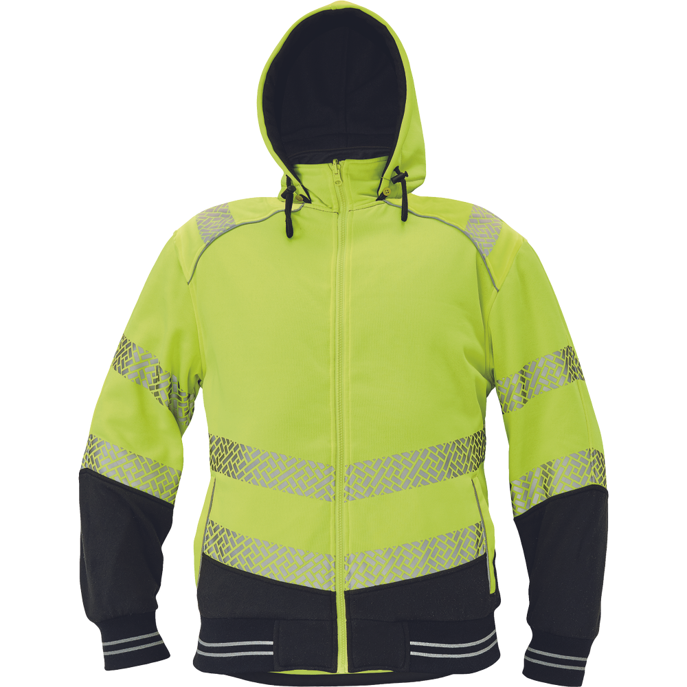 – moška reverzibilna kapuca HI-VIS z zadrgo in snemljivo kapuco – odsevne črte in cevi – 2 stranska žepa – elastični spodnji robovi in rokavi – druga različica v črni barvi s kengurujskim žepom in odsevnimi cevmi – EN 20471 (razred 3) velja za velikosti M-5XL – EN 20471 (razred 2) velja za velikosti XS-S