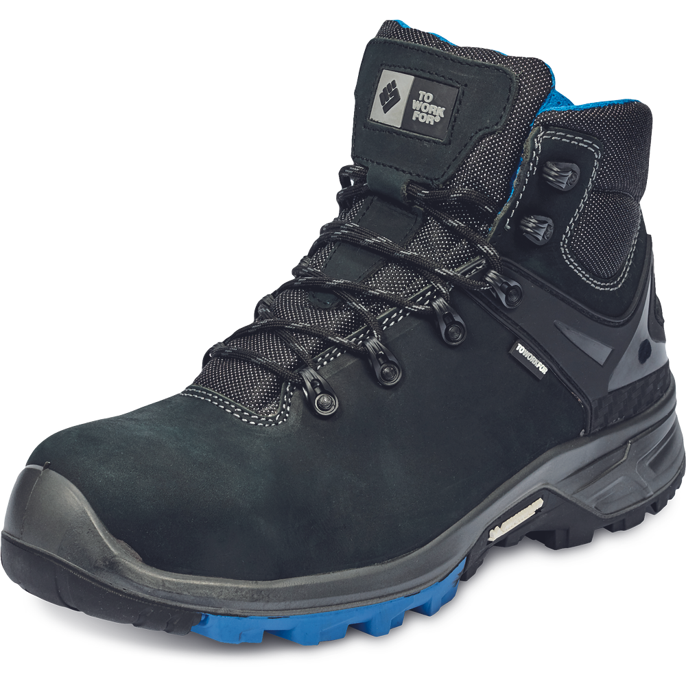– varnostni gležnjarji z nekovinskim prstnim pokrovom in podplatom iz aramida, odpornim proti predrtju – podplat iz PU/gume – zgornji del iz visokokakovostnega nubukastega usnja