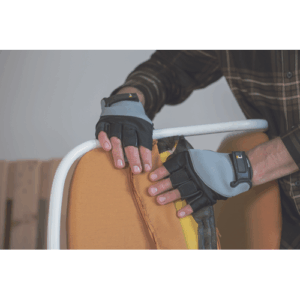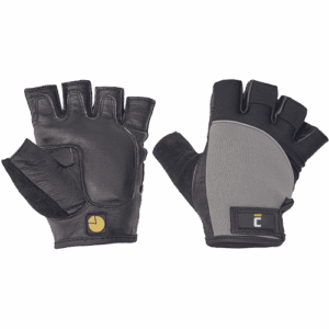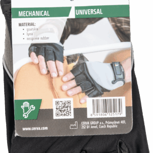 – rokavice brez prstov z dlanjo iz fine kozje kože z gelskim vložkom – hrbtna stran iz lycre in neoprenske gume – manšeta z velcro zapenjanjem
