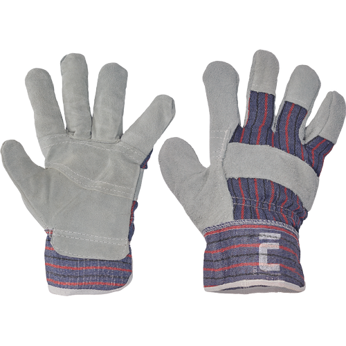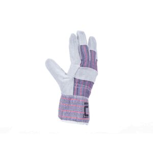 – rokavice iz govejega cepljenega usnja – podložene na dlani – hrbet in manšeta iz bombažne tkanine