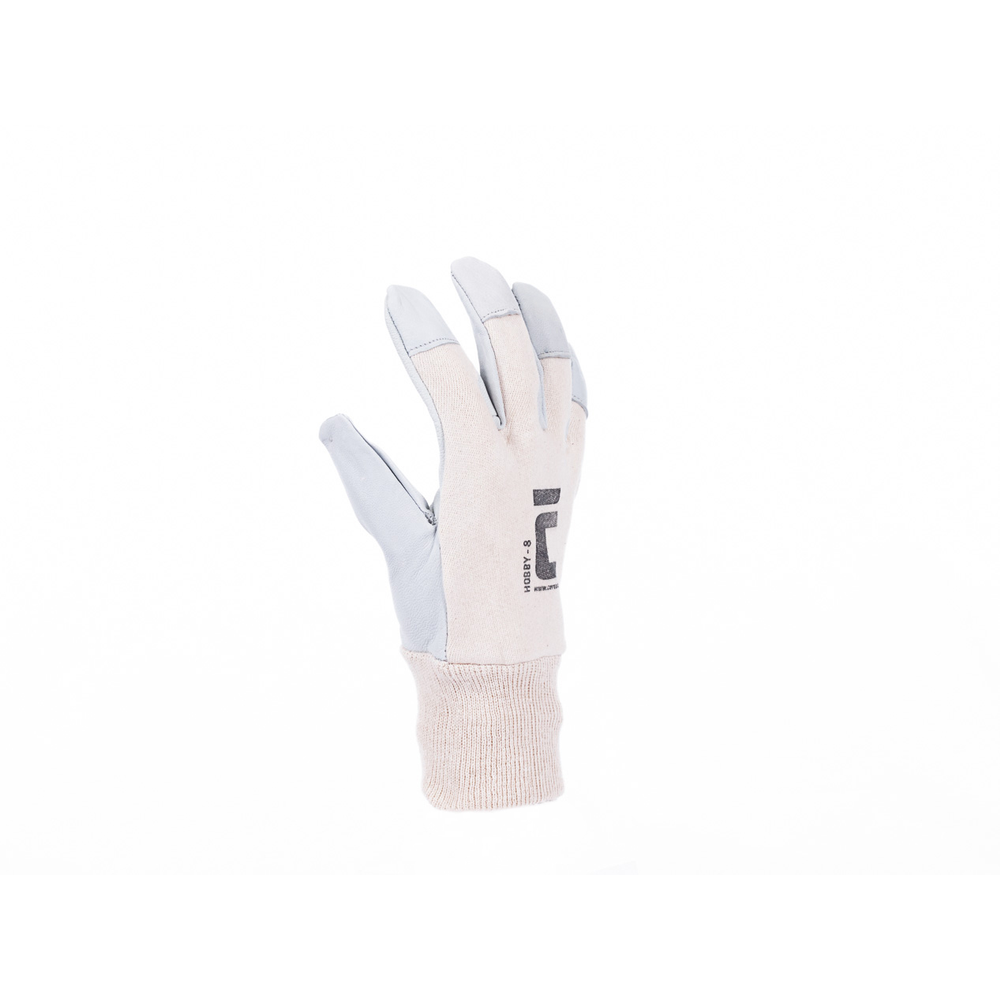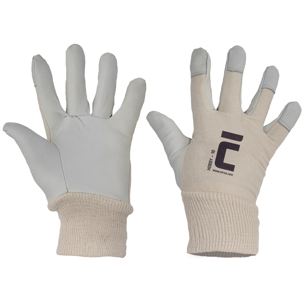 – rokavice z dlanjo iz ovčjega usnja – hrbtna stran iz bombažne tkanine – prekrivne konice prstov in pletena manšeta