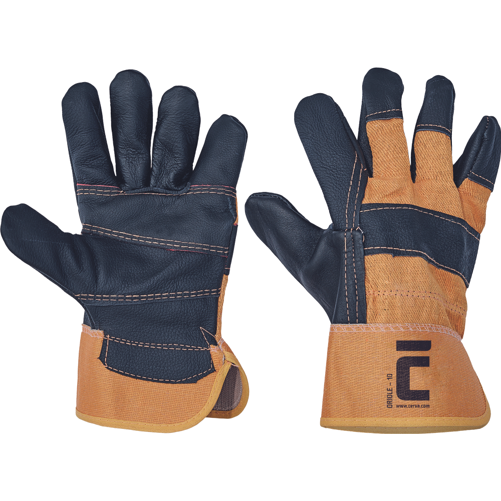 – rokavice z enobarvnim pohištvom dlan iz goveje kože s podlogo – hrbtna stran iz bombažne tkanine – trpežna manšeta