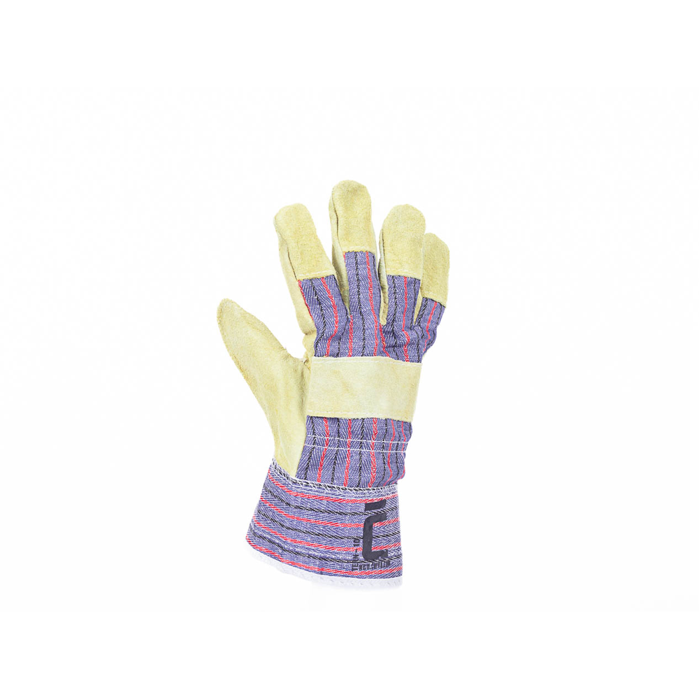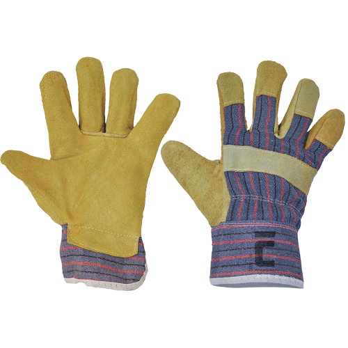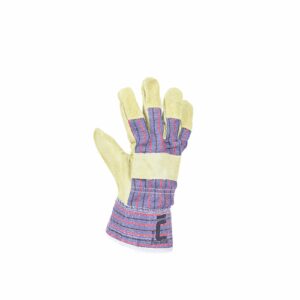 – rokavice iz govejega cepljenega usnja, podložene na dlani – hrbet in manšeta iz bombažne tkanine