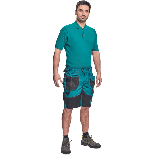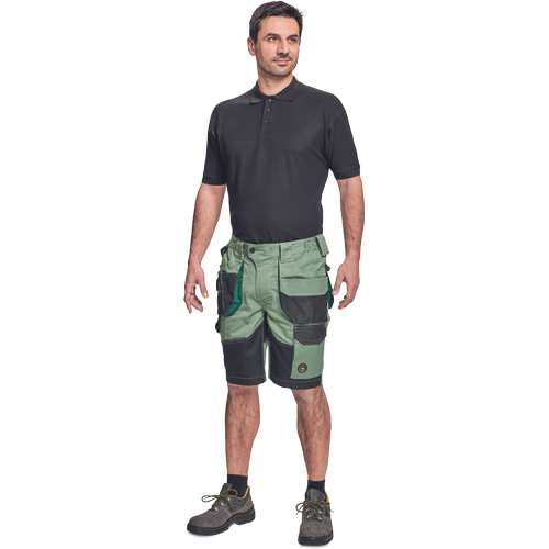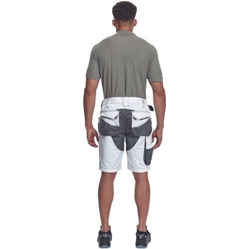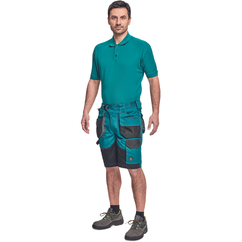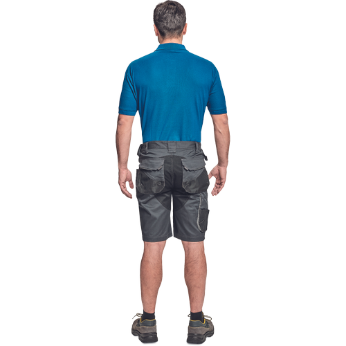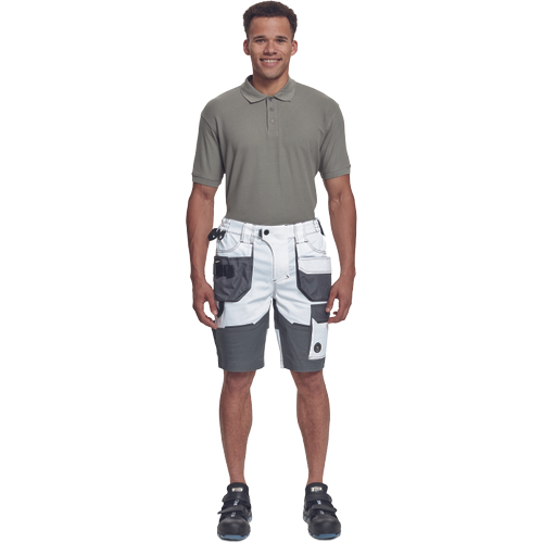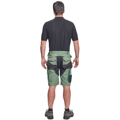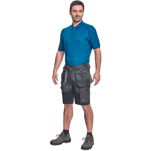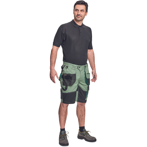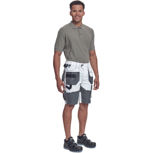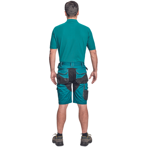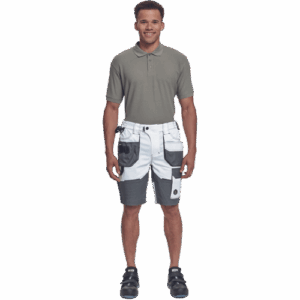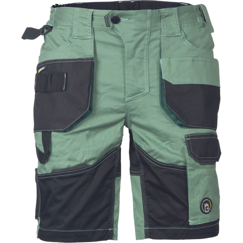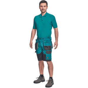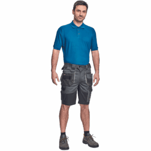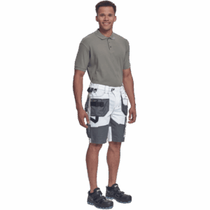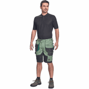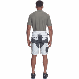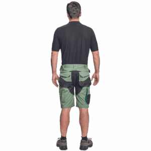 – moške delovne hlače z elastičnim pasom – elastična inovativna tkanina Trifibetex® – trpežen trojni šiv na nogah in v mednožju – prostorni večnamenski sprednji žepi s trakom za orodje – odsevne podrobnosti ton v tonu