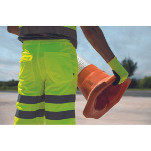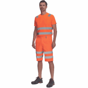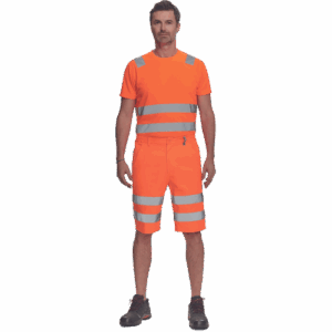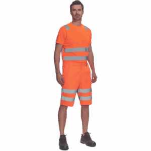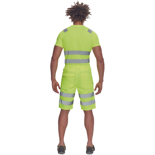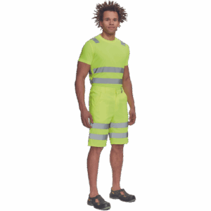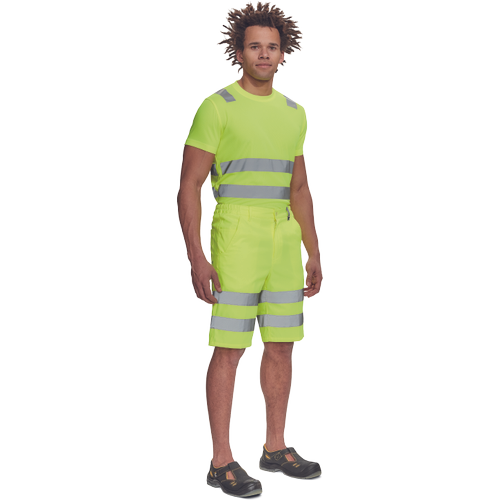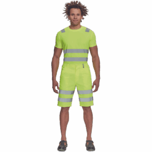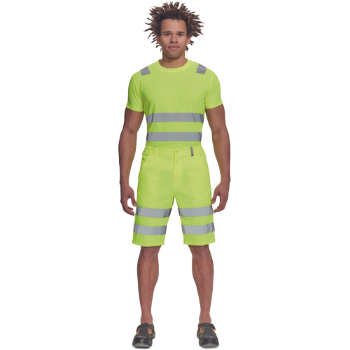 – moške lahke kratke hlače HI-VIS z odsevnimi črtami, elastičen pas – 2 stranska žepa, 1 žep za kovance – 2 zadnja žepa