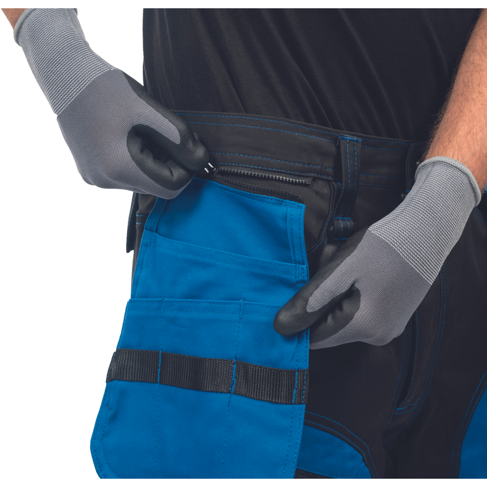 – moške delovne hlače iz elastičnega materiala – večnamenski žepi – 2 snemljiva žepa za orodje za letenje spredaj – FP – okrasni šivi