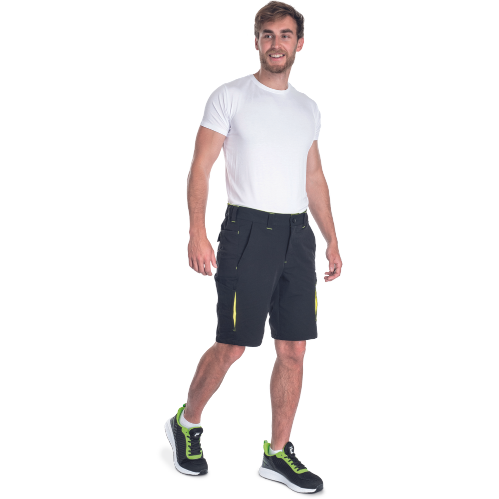 – udobne moške kratke hlače iz raztegljivega materiala – poudarjene z odsevnimi elementi – 2 sprednja žepa – 2 zadnja žepa – 2 večnamenska žepa na stegnih