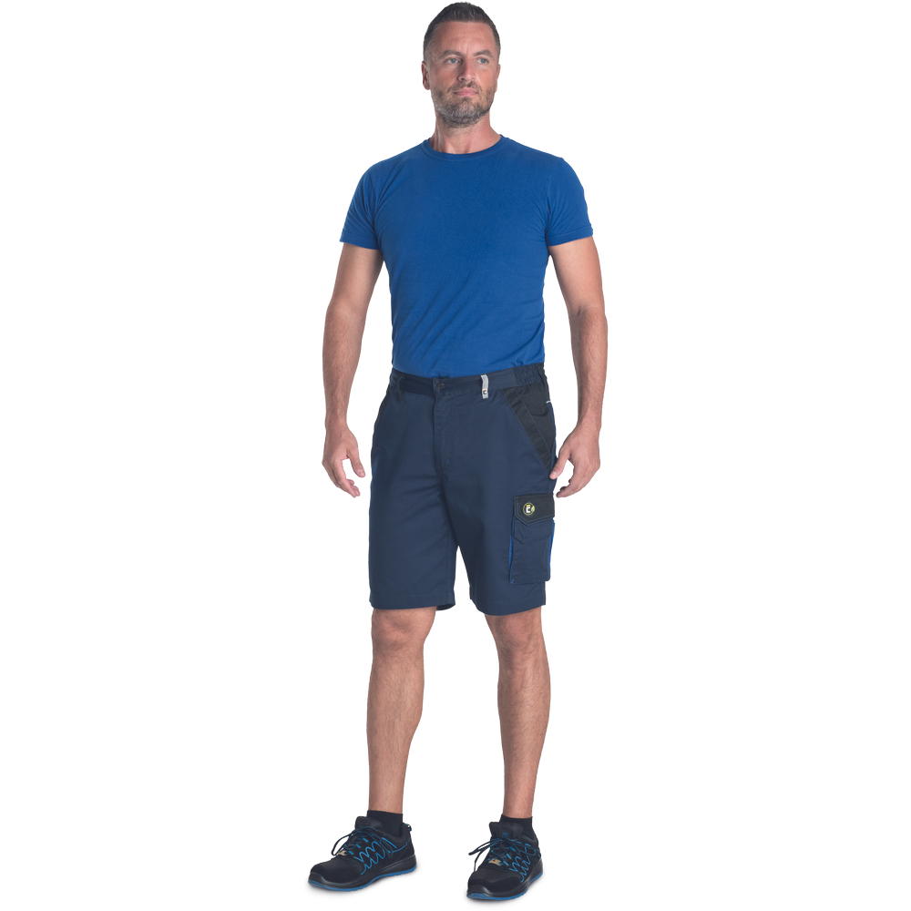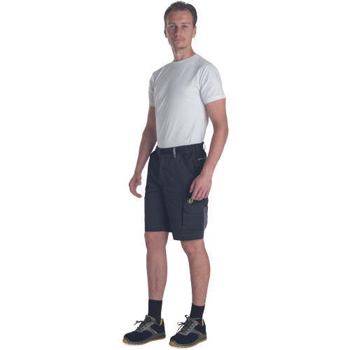 – moške delovne hlače z elastičnim pasom – 2 stranska žepa – 2 žepa na stegnih – 2 zadnja žepa z velcro zapiranjem – odsevne podrobnosti