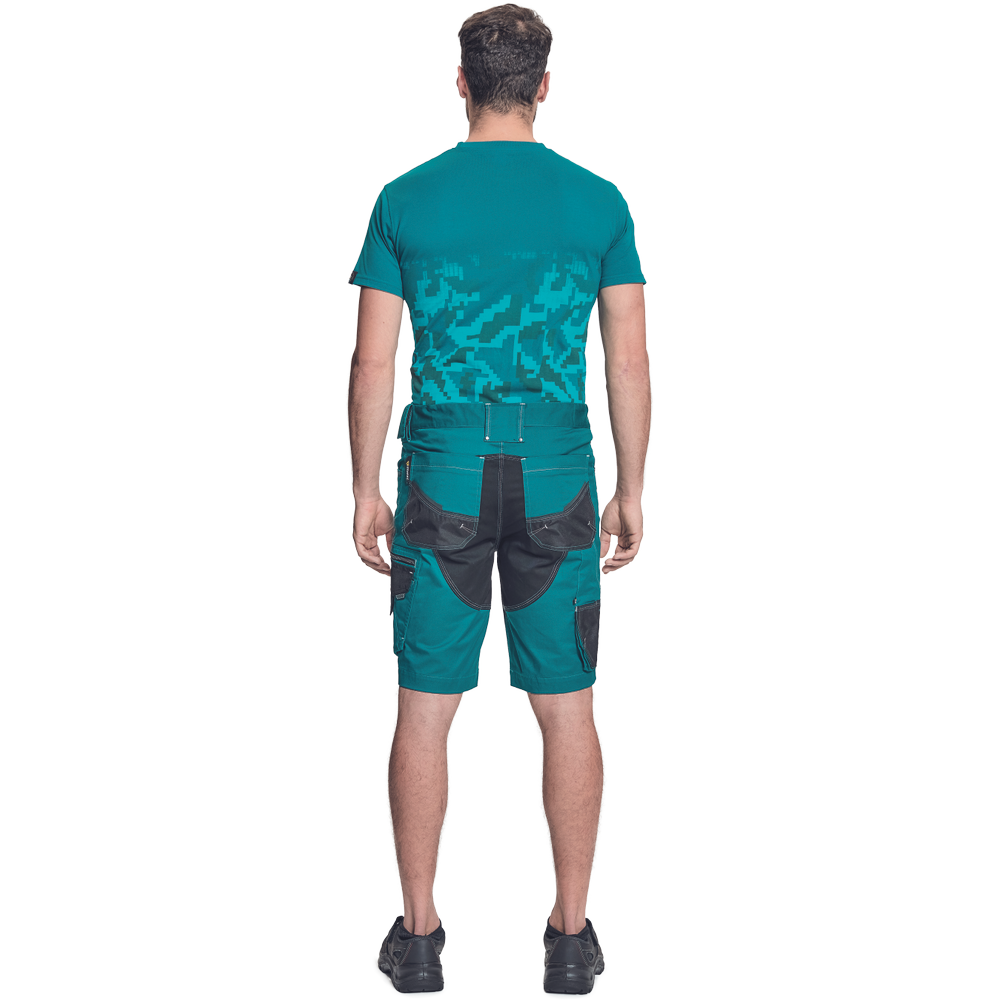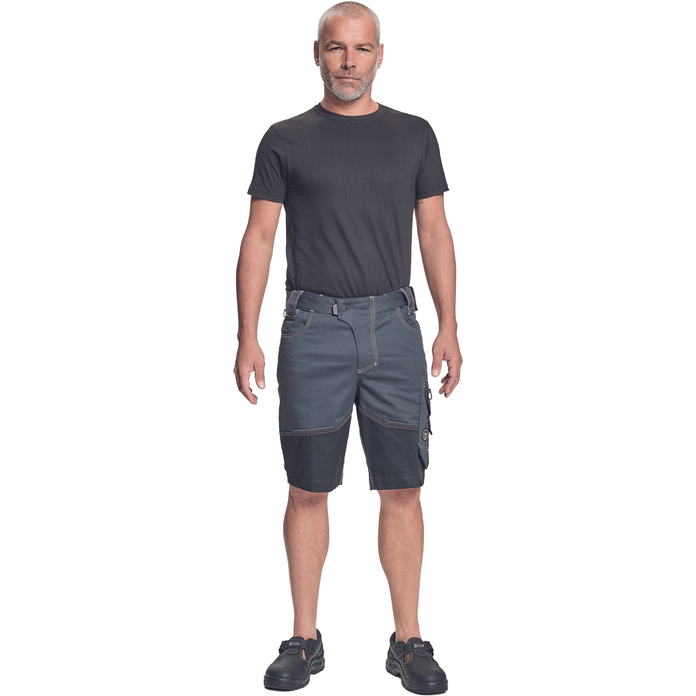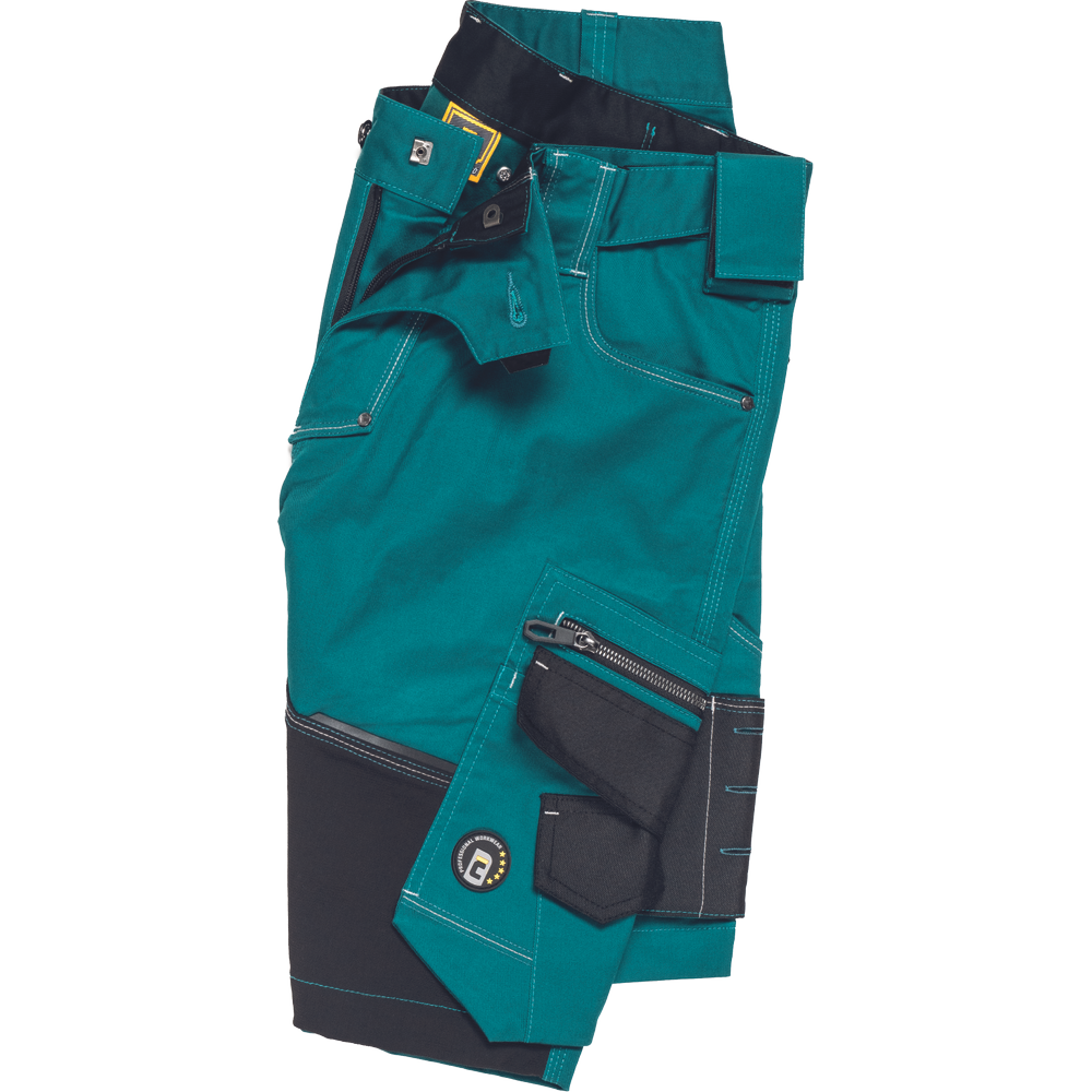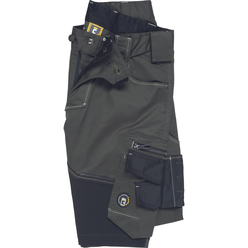 – moške delovne hlače z elastičnim pasom – elastičen inovativen material Trifibetex® – trpežen trojni šiv na nogah in mednožju – prostorni večnamenski sprednji žepi s trakovi za orodje – odsevne podrobnosti ton v tonu