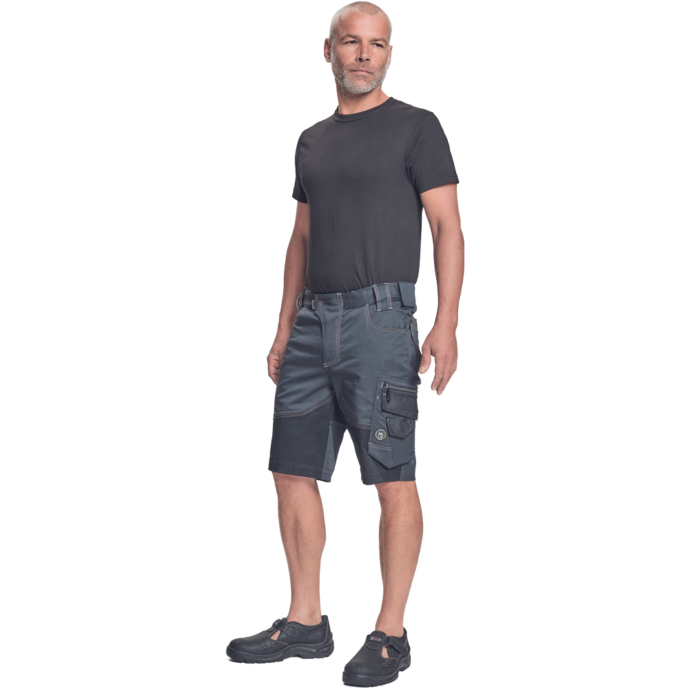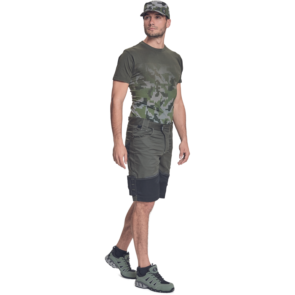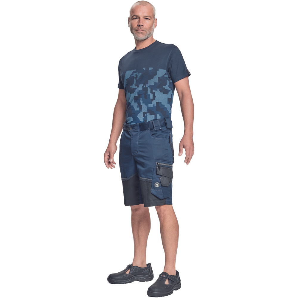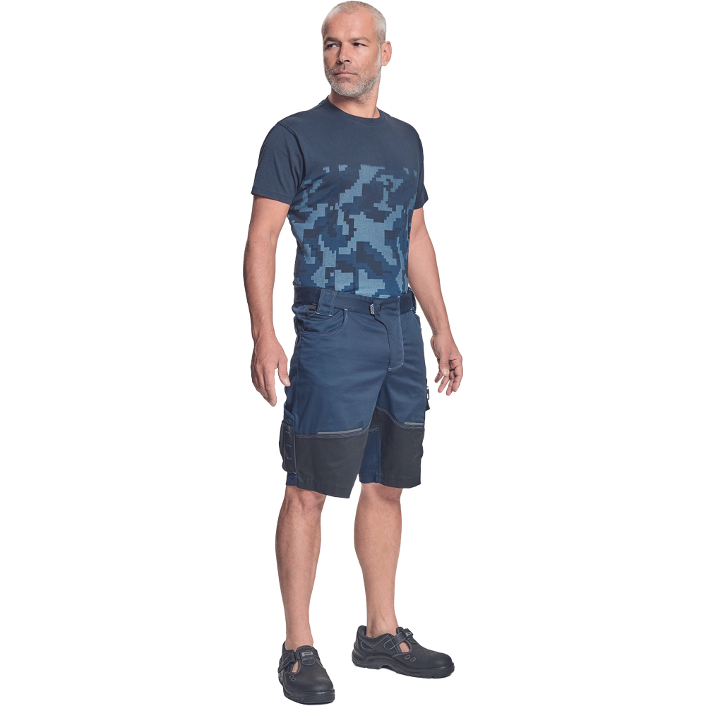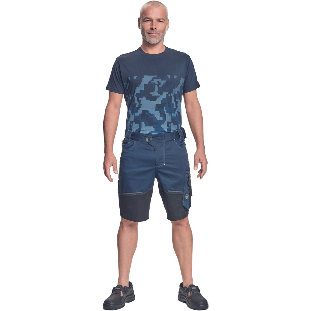 – moške delovne hlače z elastičnim pasom – elastičen inovativen material Trifibetex® – trpežen trojni šiv na nogah in mednožju – prostorni večnamenski sprednji žepi s trakovi za orodje – odsevne podrobnosti ton v tonu
