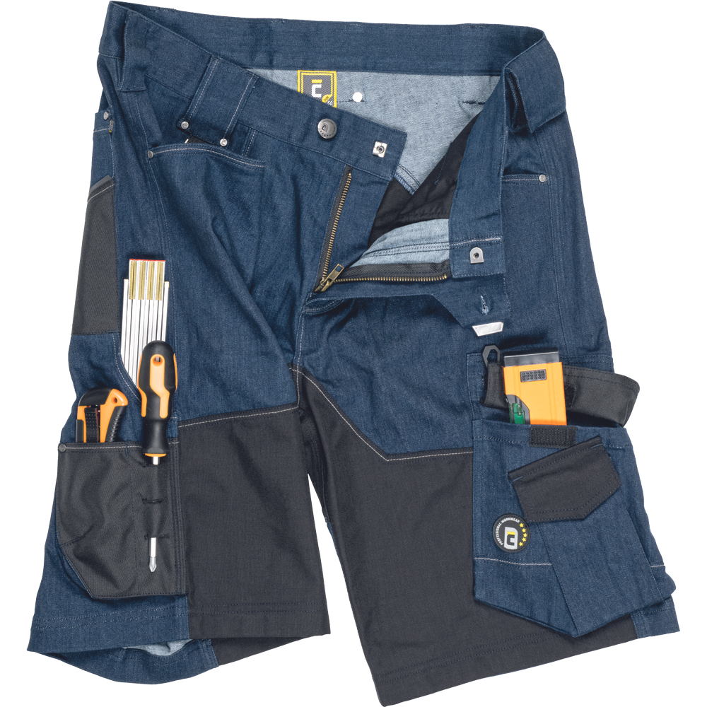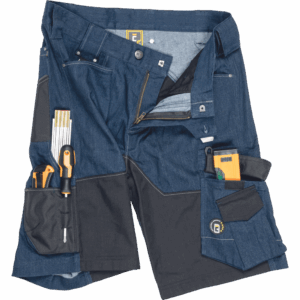 – moške delovne hlače – predhodno oprana tkanina Denim v kombinaciji z materialom Trifibetex® – trpežni trojni šivi na nogah in mednožju, ojačani deli stegen in mednožja iz materiala CORDURA® in Trifibetex® – prostorni večnamenski sprednji žepi s trakovi za orodje