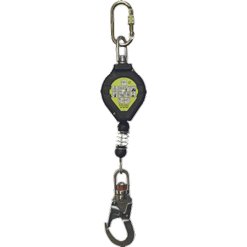 Lanex self-retracting self-retracting fall arrester CR 30 with carabiners and steel cable Ø 4 mm and length 3 m; two rotating elements; fall arrest indicator; load capacity max. 140 kg