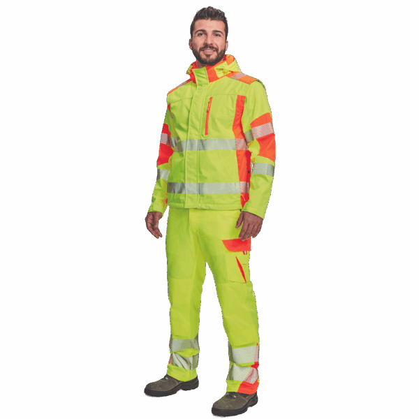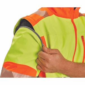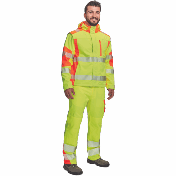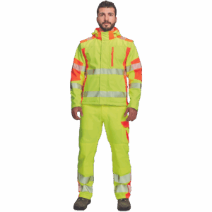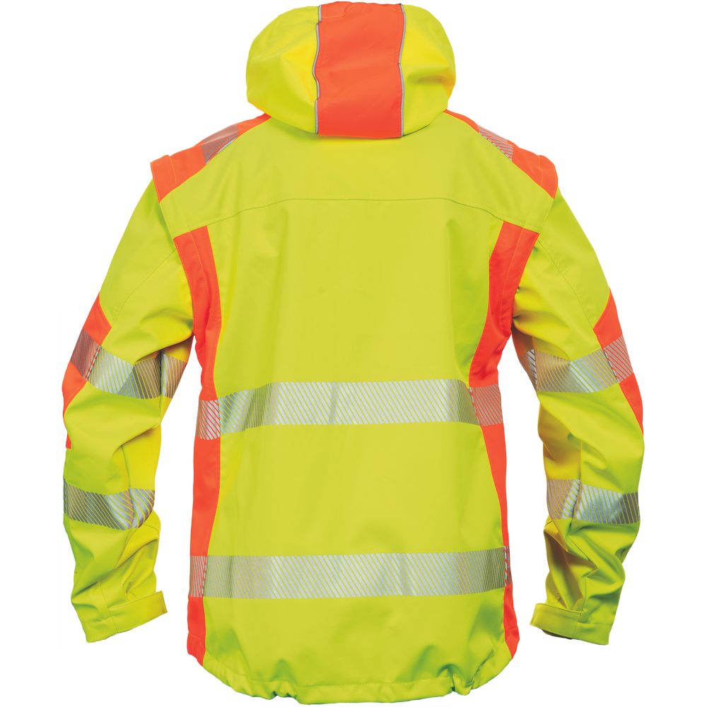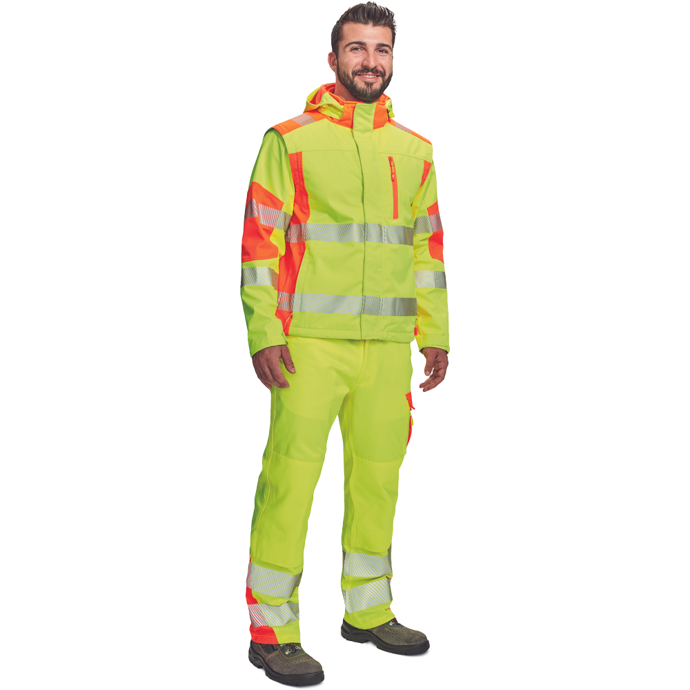 – visokokakovostna moška zračna softshell jakna s snemljivimi rokavi in kapuco – kombinacija dveh barv HI-VIS – odsevne odsevne črte okoli bokov in rokavov – vetru in vodi odporna kakovostna tkanina z membrano TPU – 2 stranska žepa na zadrgo, prsni žep na zadrgo – nastavljiv spodnji rob z vrvico – nastavljivi robovi rokavov z velcro