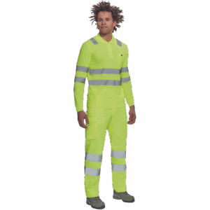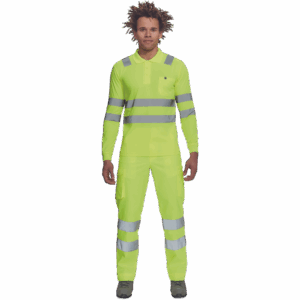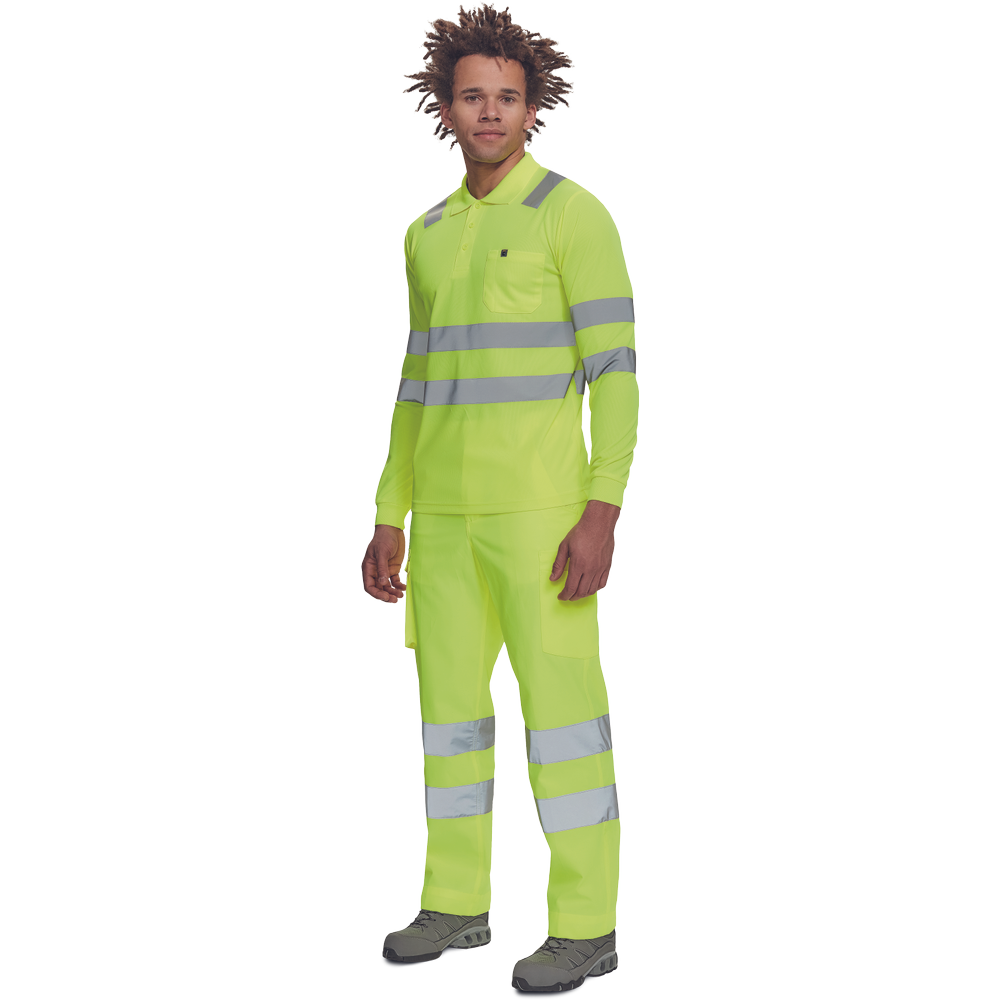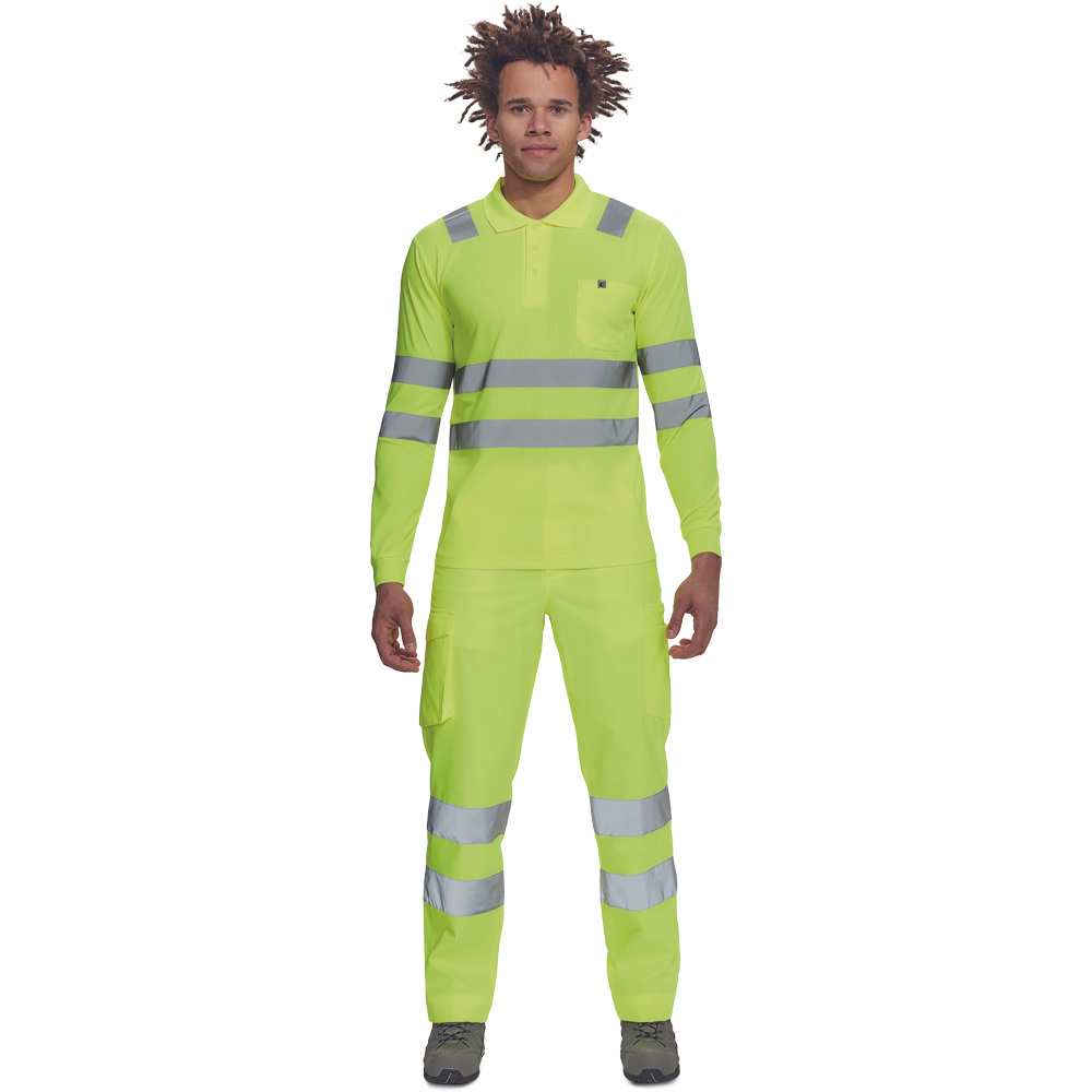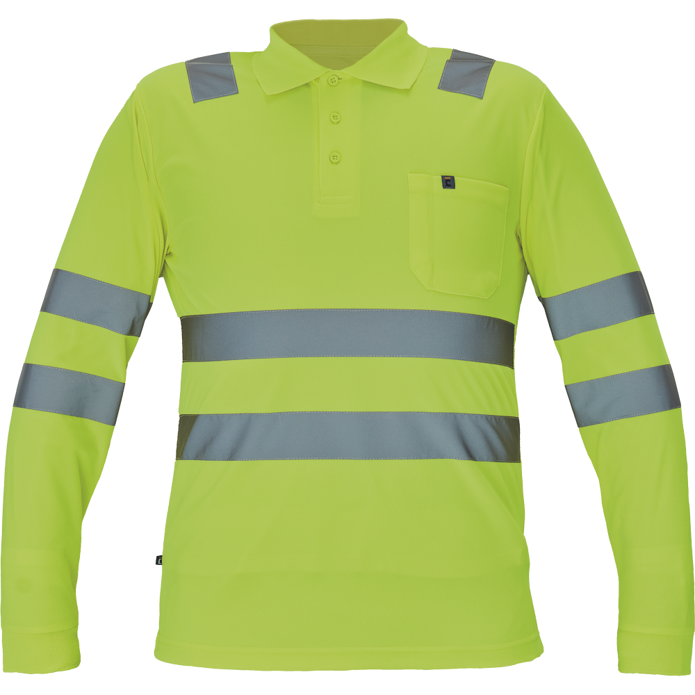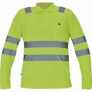 moška pološnja v celoti HI-VIS z dolgimi rokavi ” odsevne črte čez ramena in okoli bokov ” 3 gumbi ” 1 prsni žep ” elastičen rob rokavov.