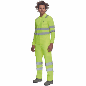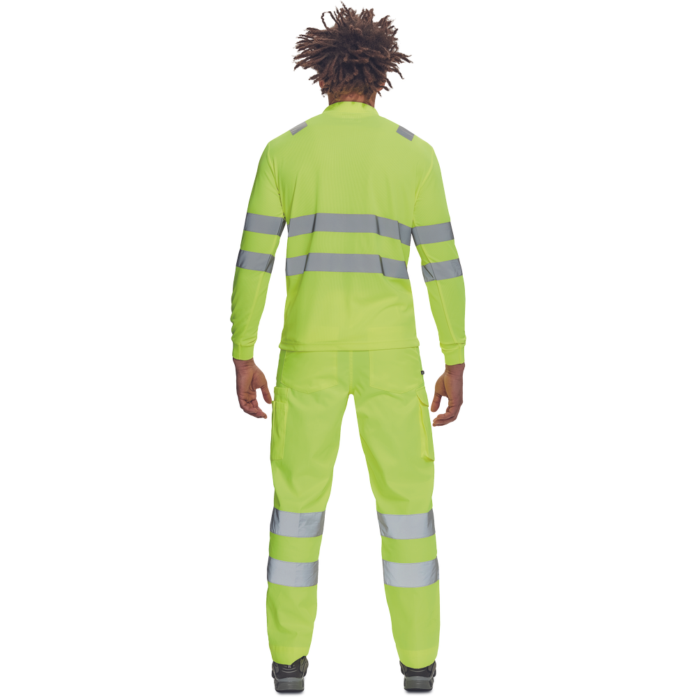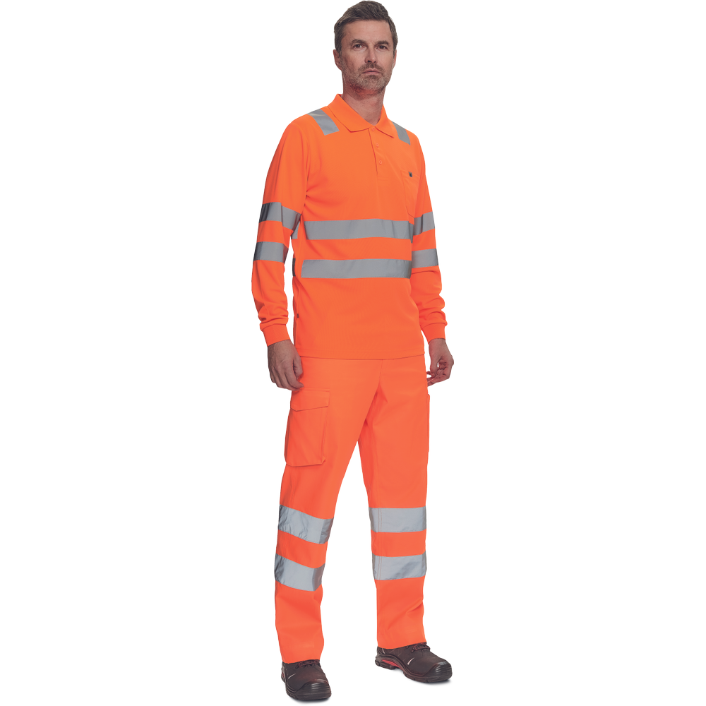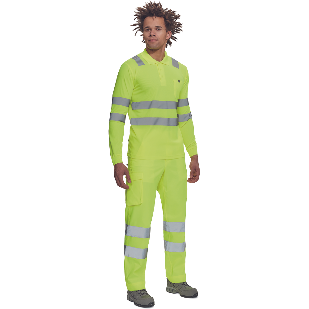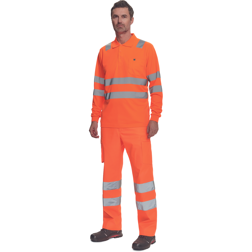 moška pološnja v celoti HI-VIS z dolgimi rokavi ” odsevne črte čez ramena in okoli bokov ” 3 gumbi ” 1 prsni žep ” elastičen rob rokavov.