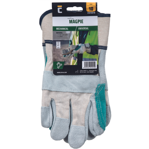 – rokavice z dvoslojno ojačano dlanjo iz kravjega usnja s podlogo – hrbtna stran iz bele bombažne tkanine – trpežna manšeta