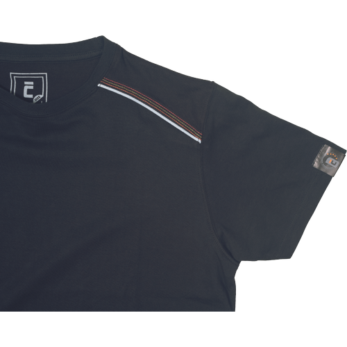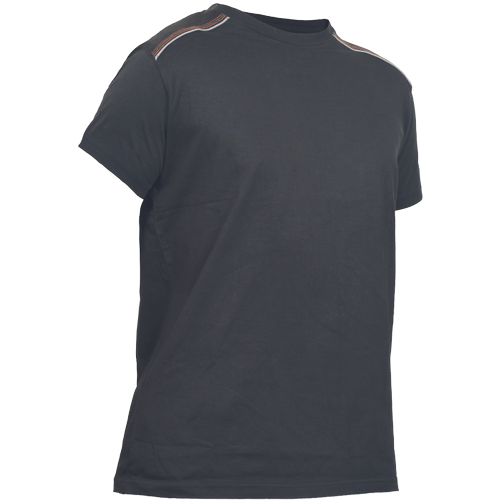 – moška majica iz česanega bombaža – kontrastno sedlo v črni barvi, podloženo z odsevnimi trakovi – okrasni šivi v barvah HI-VIS