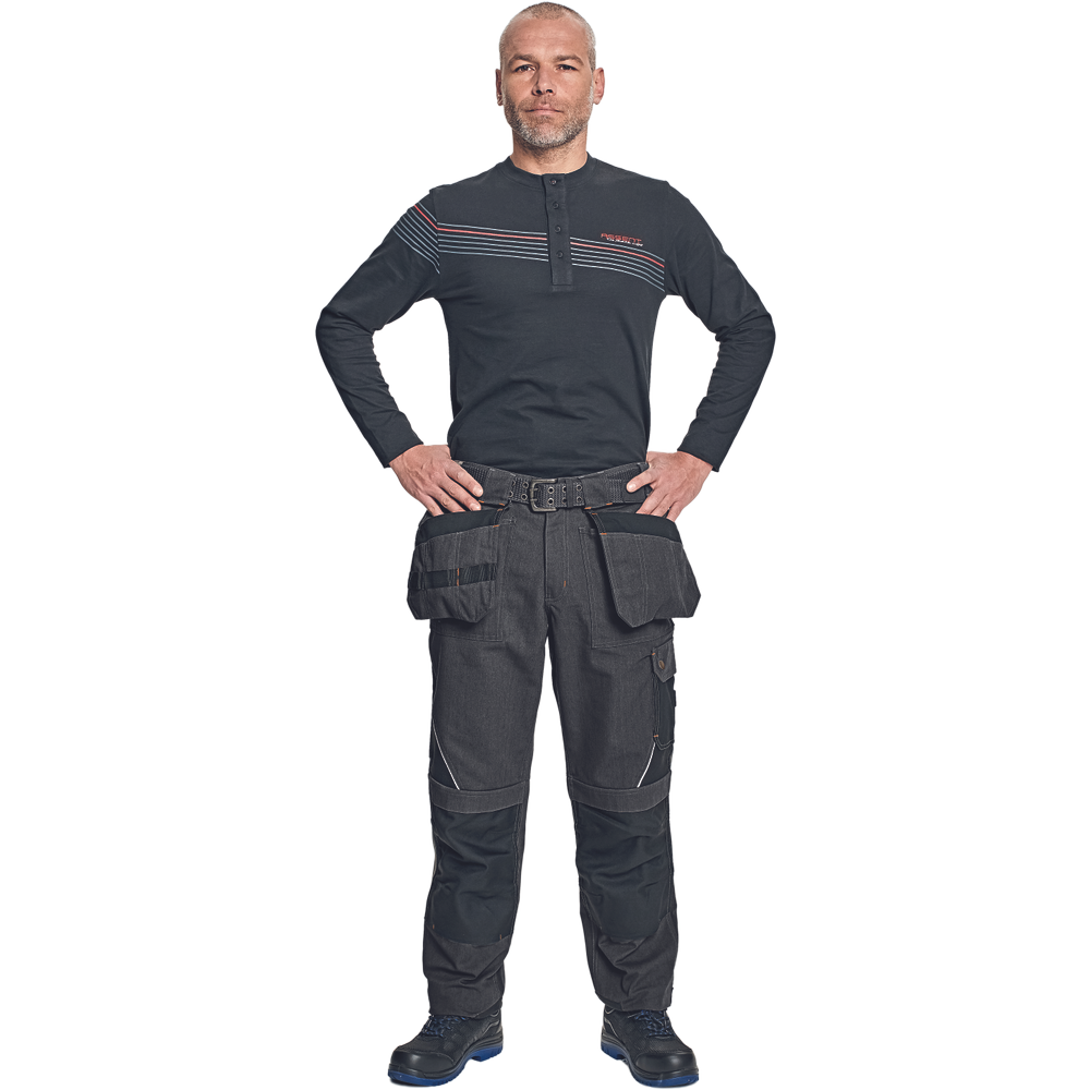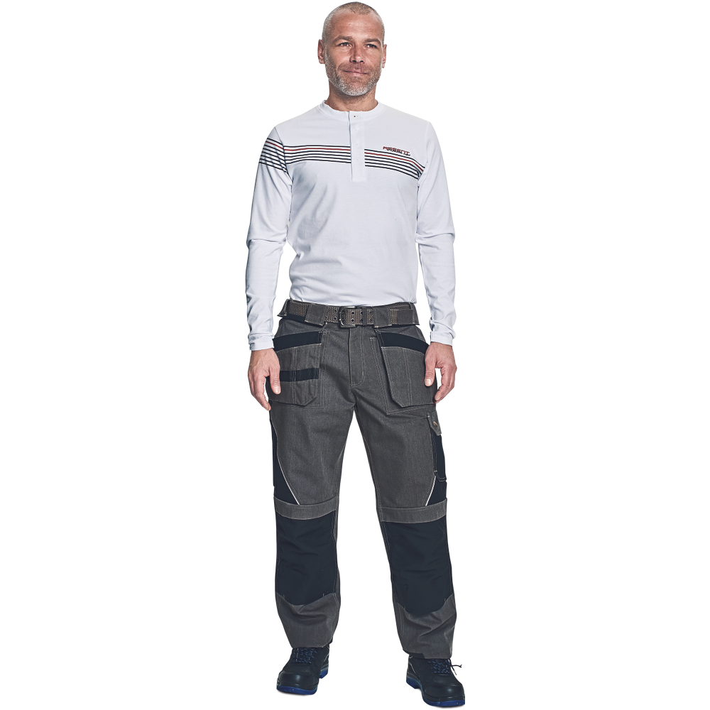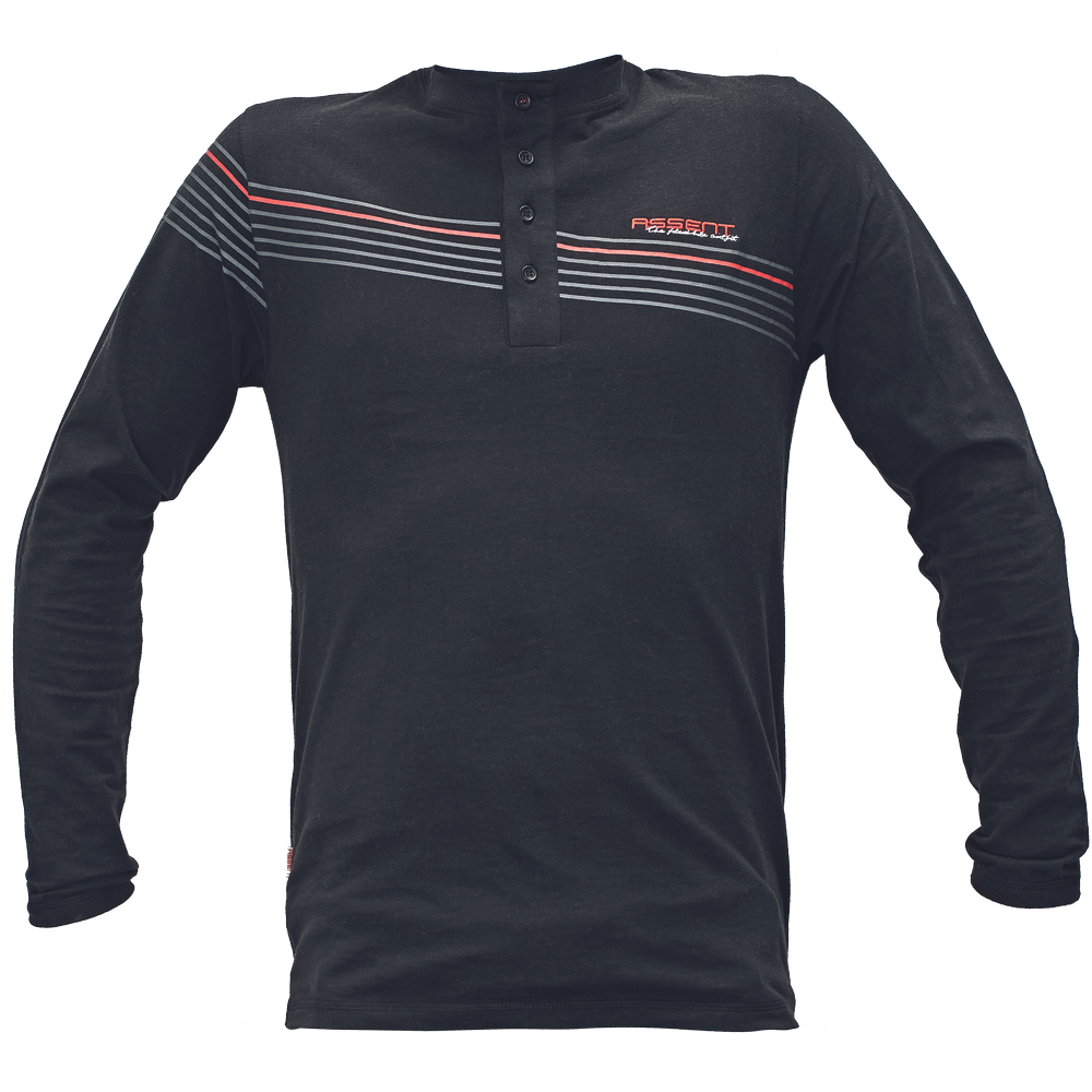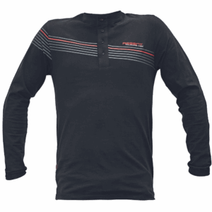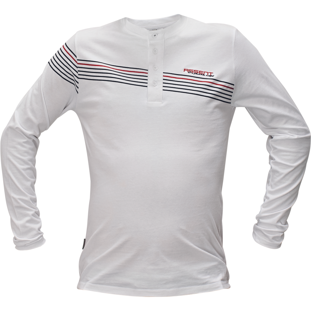 – moška majica z dolgim rokavom – zapenjanje na 4 gumbe – spodnji rob vratu iz lycra rebra – potisk na prsih in rokavih – vezenina ASSENT