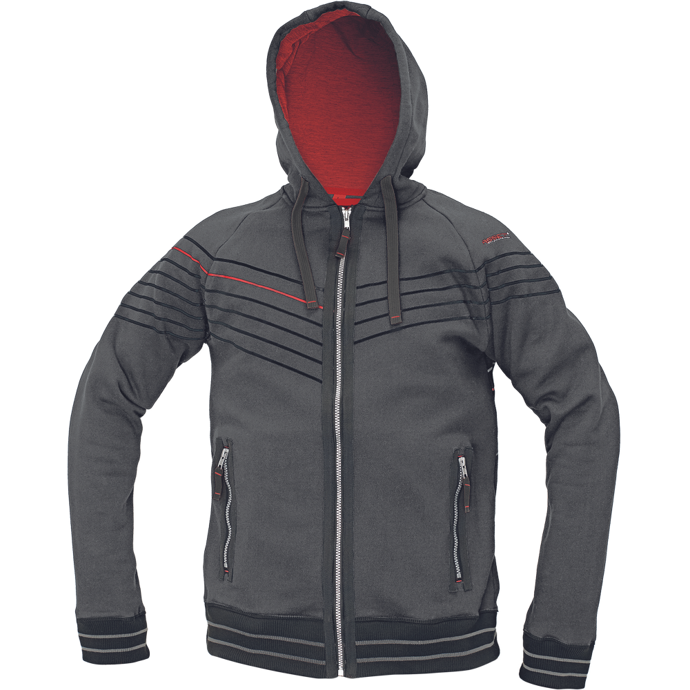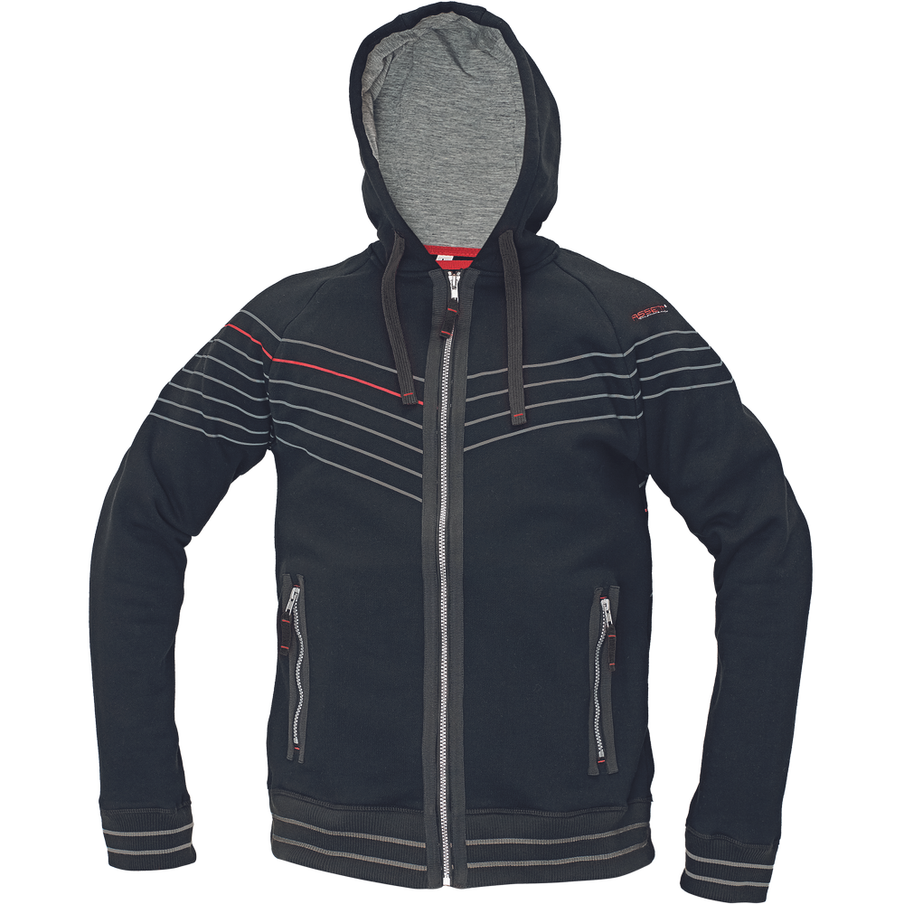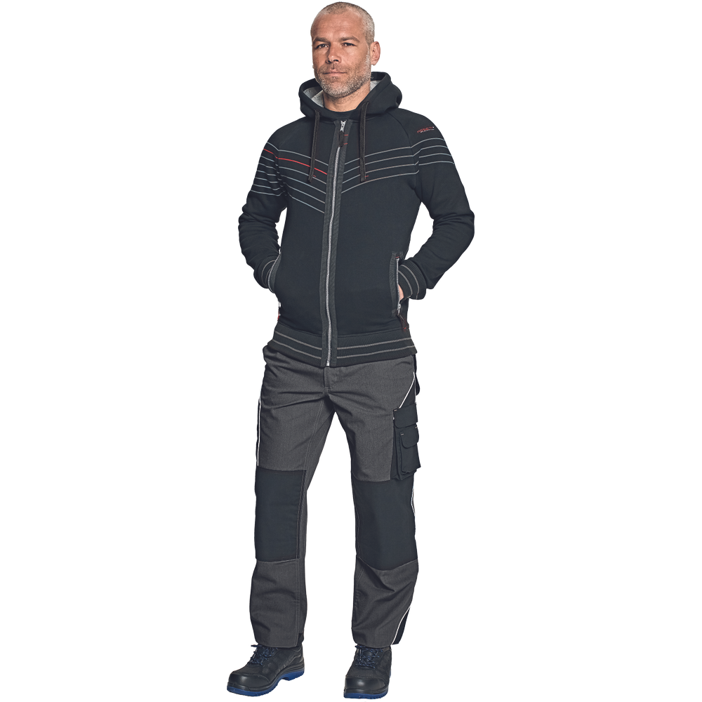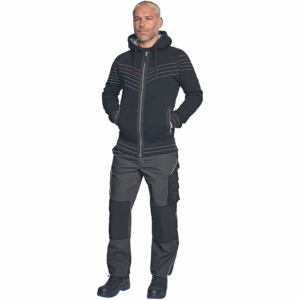 – Moška kapuca z zadrgo iz francoskega frotirja z bruhano notranjostjo – 2 stranska žepa na zadrgo – nabor ob zadrgi iz kontrastne tkanine – dvojna kapuca s podlogo v kontrastni barvi – močni pleteni robovi – vrvica kapuce v kontrastni barvi – tisk na prsih in rokavih – vezenina ASSENT na rokavu