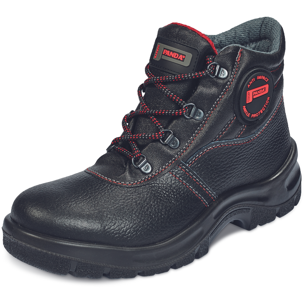 – varnostni škornji z jeklenim prstnim pokrovom – antistatični – podplat odporen proti zdrsu in gorivu – absorpcija energije v peti – dihajoč usnjen zgornji del
