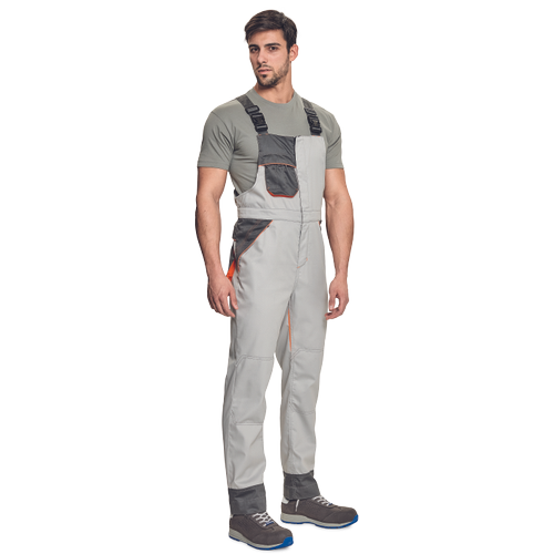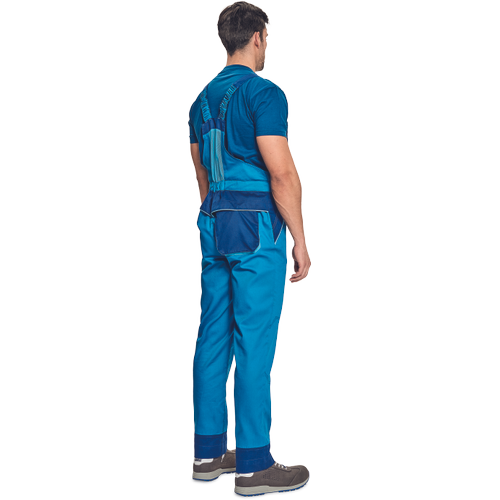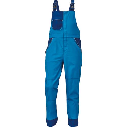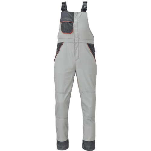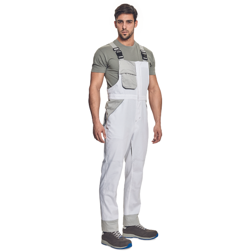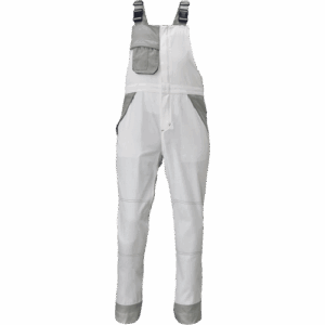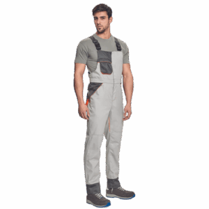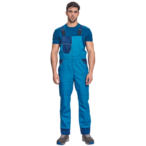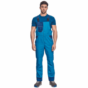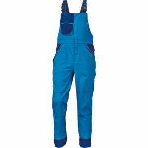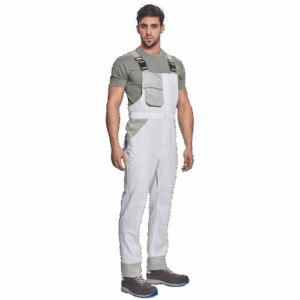 – moške delovne lahke hlače z naprsnikom, certificirane za industrijsko pranje – zračne zaradi uporabe mrežastih delov – popolnoma pokrito zapiranje – nastavljiv pas z velcro na straneh – nastavljiva dolžina nogavic 5 cm – dostop za identifikacijski čip v notranjosti – okrasne cevi v kontrastni barvi