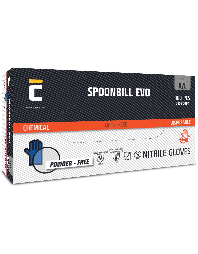 – nitrilne rokavice za enkratno uporabo brez prahu, certificirane za neposreden stik z mastno hrano – odporne na viruse in izbrane kemikalije