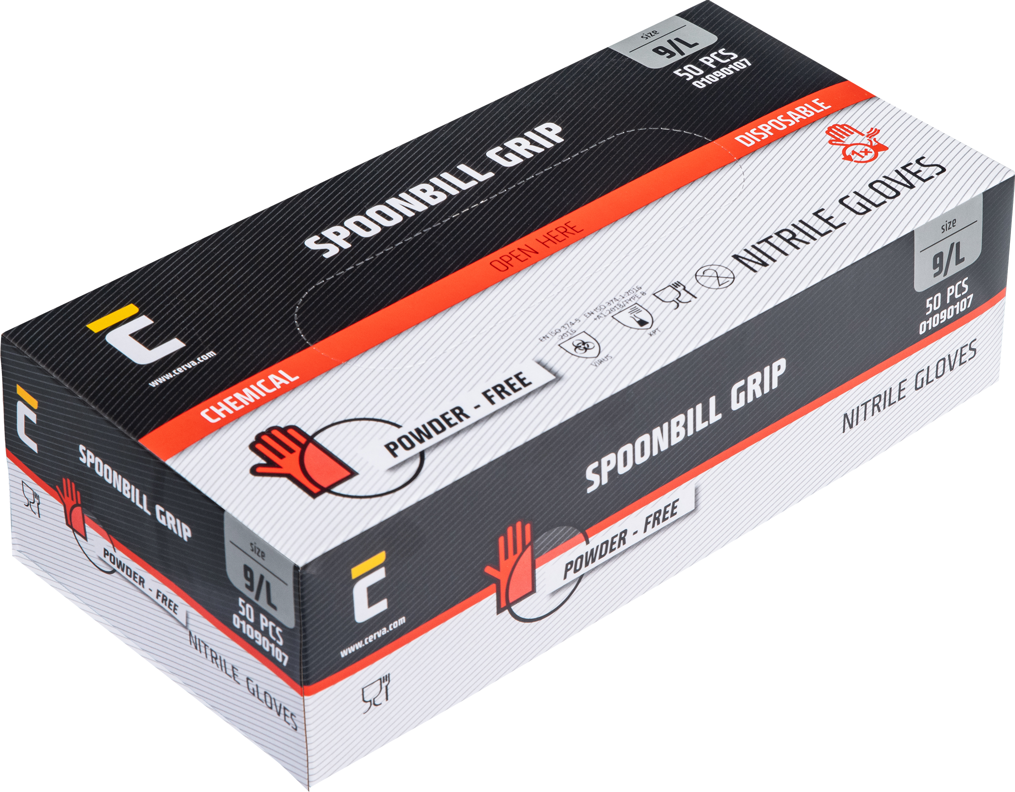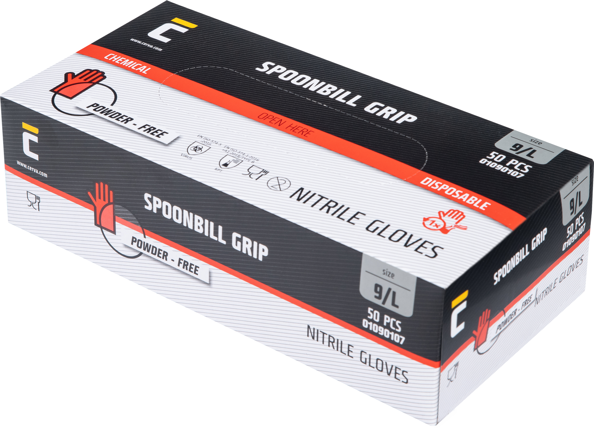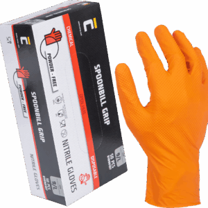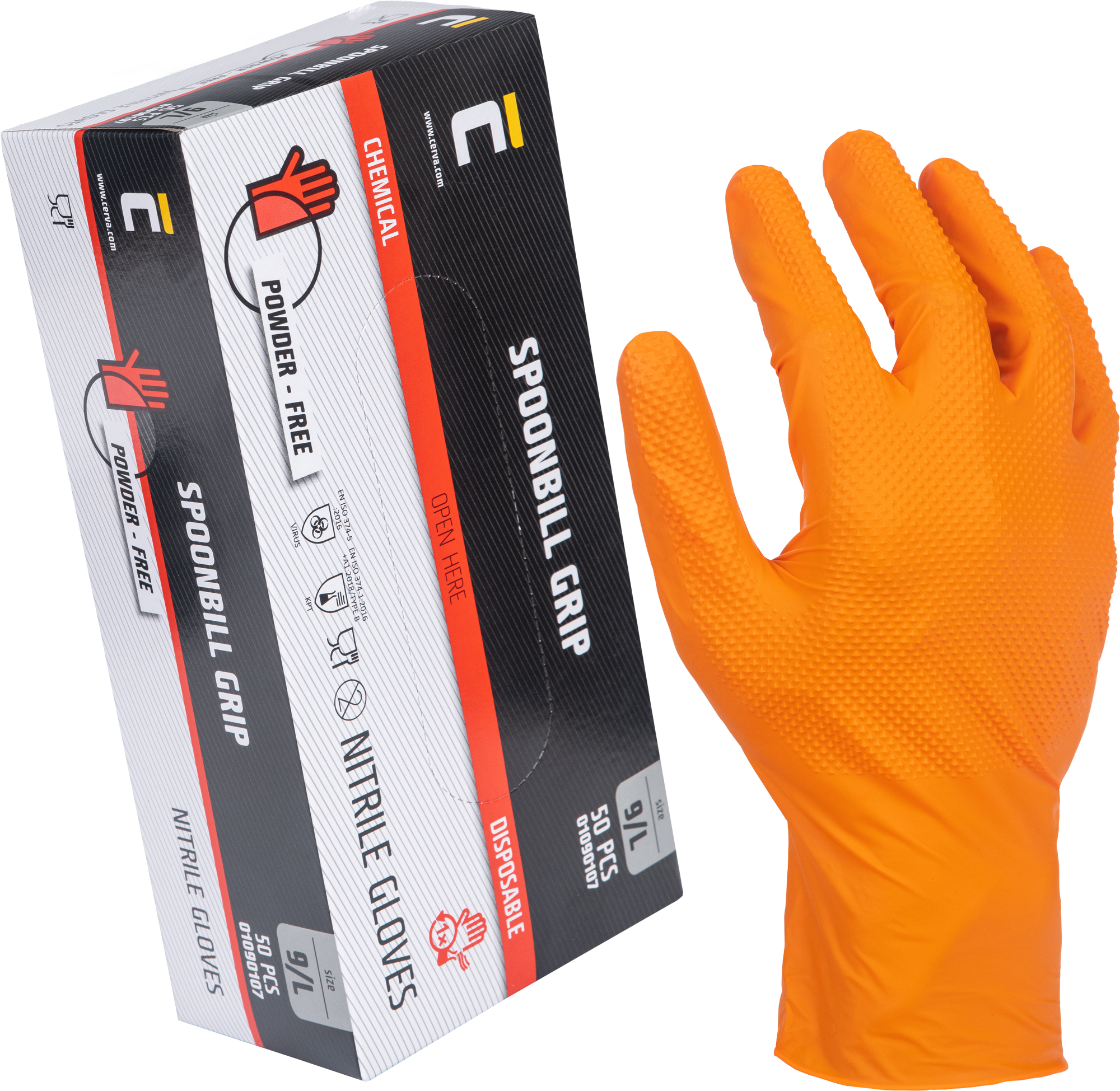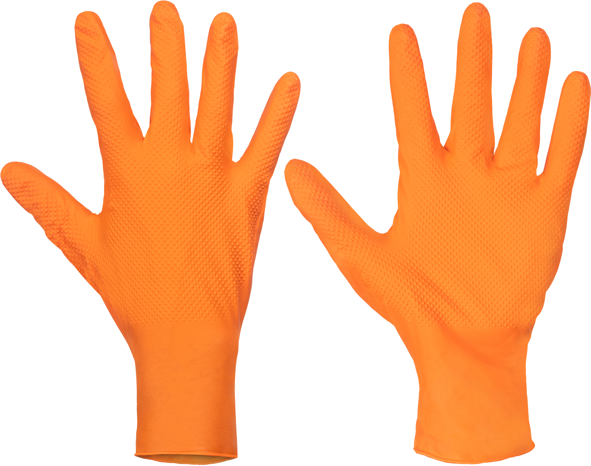 Nitrilne rokavice za enkratno uporabo – zelo močne, brez prahu, 50 kosov v škatli. Zaradi diamantne teksture zagotavljajo odličen oprijem tudi v mastnih, mokrih ali umazanih okoljih. Odlična izbira za mehanike, monterje, avtomehanike in vse, ki potrebujejo zanesljivo zaščito rok pri delu v zahtevnih okoljih.