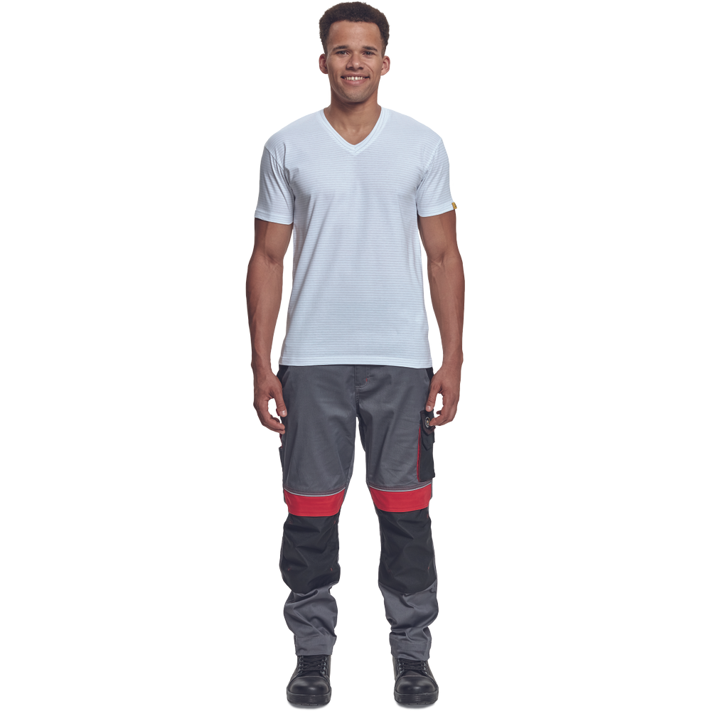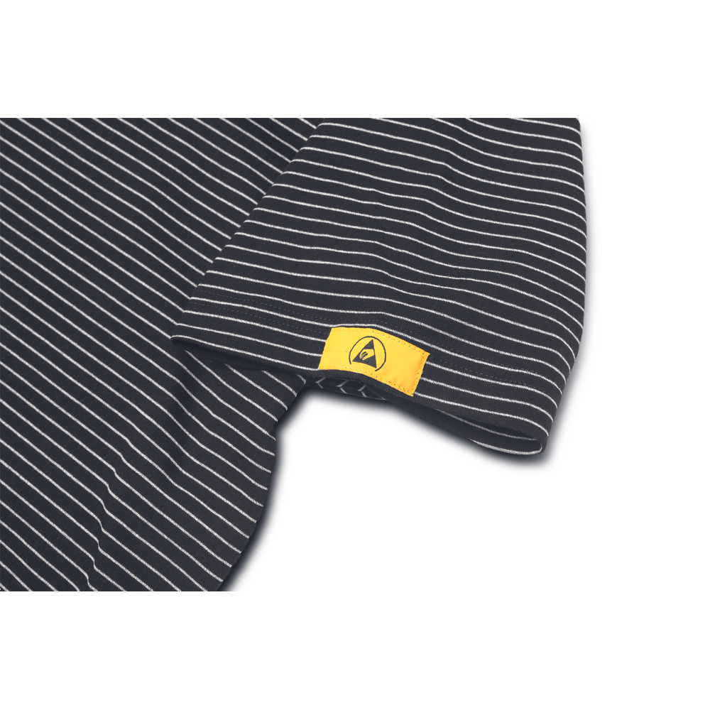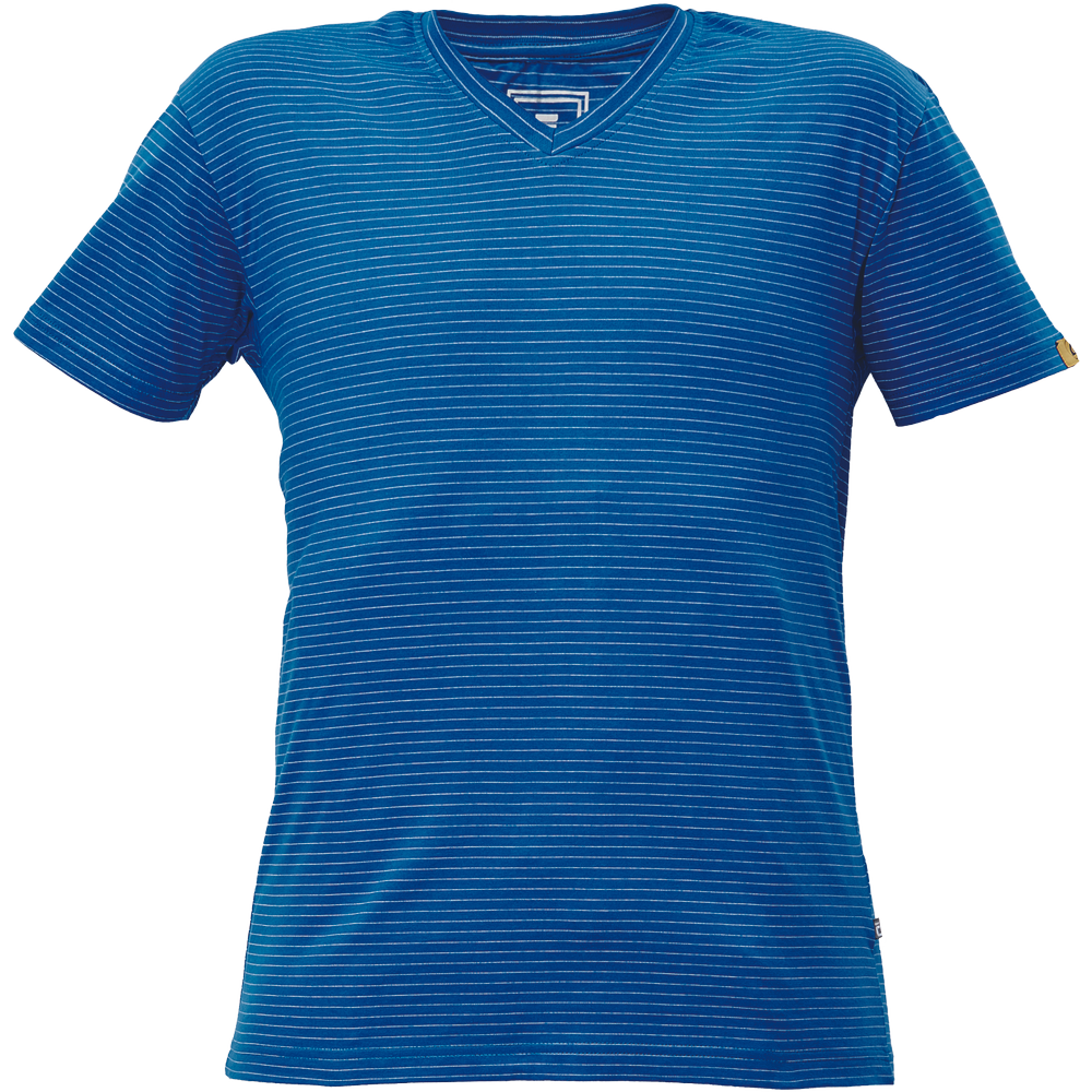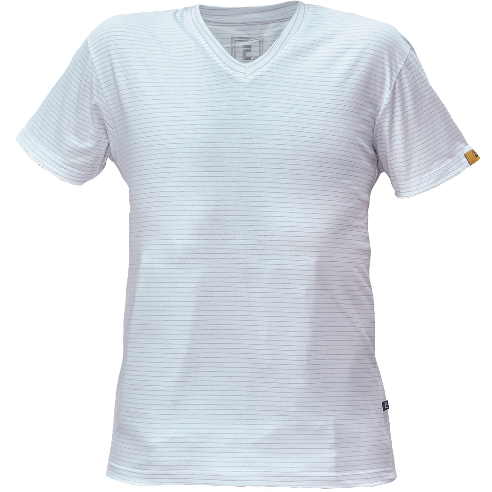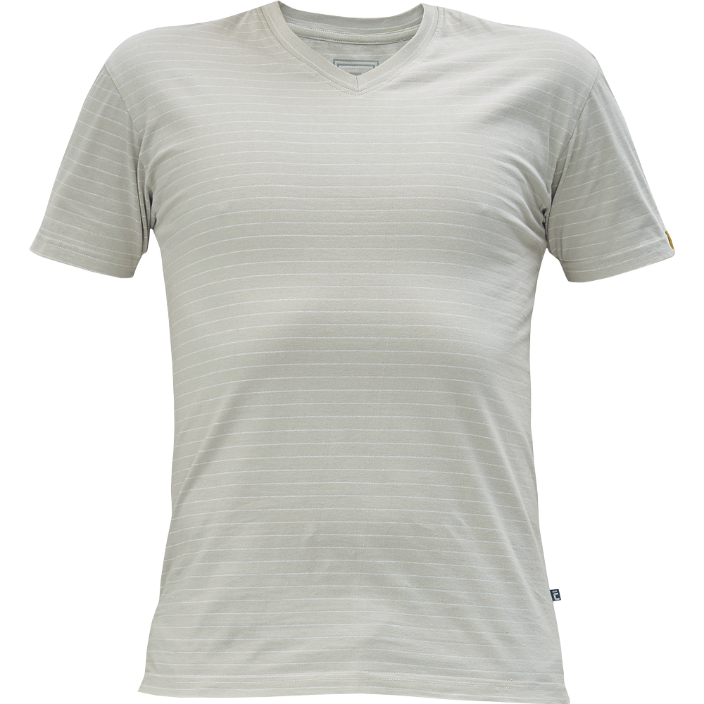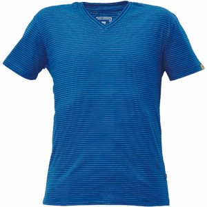 – ESD majica s kratkimi rokavi in V-izrezom iz bombažnega enojnega džersija z antistatičnimi vlakni – zagotavlja zaščito elektronskih naprav pred elektrostatičnimi vplivi – univerzalni kroj