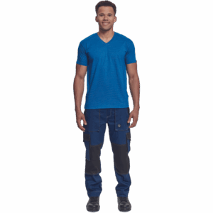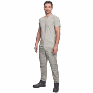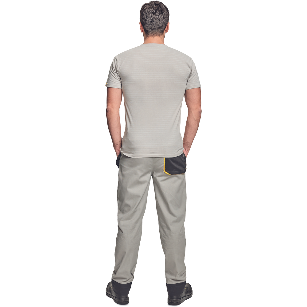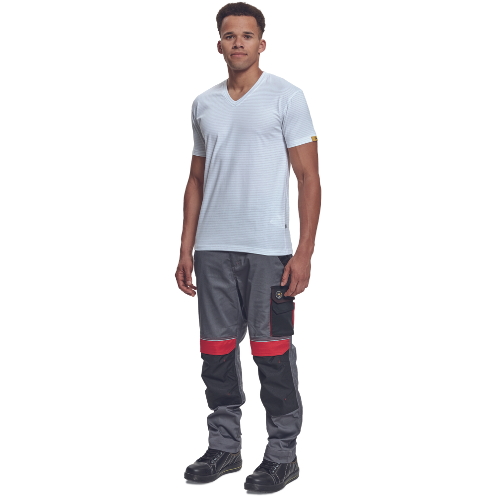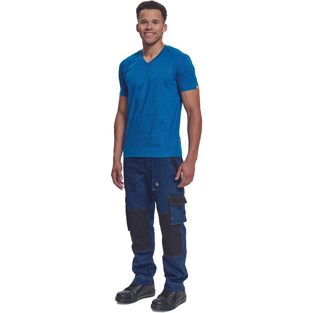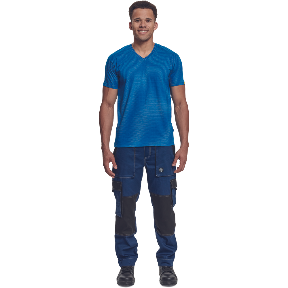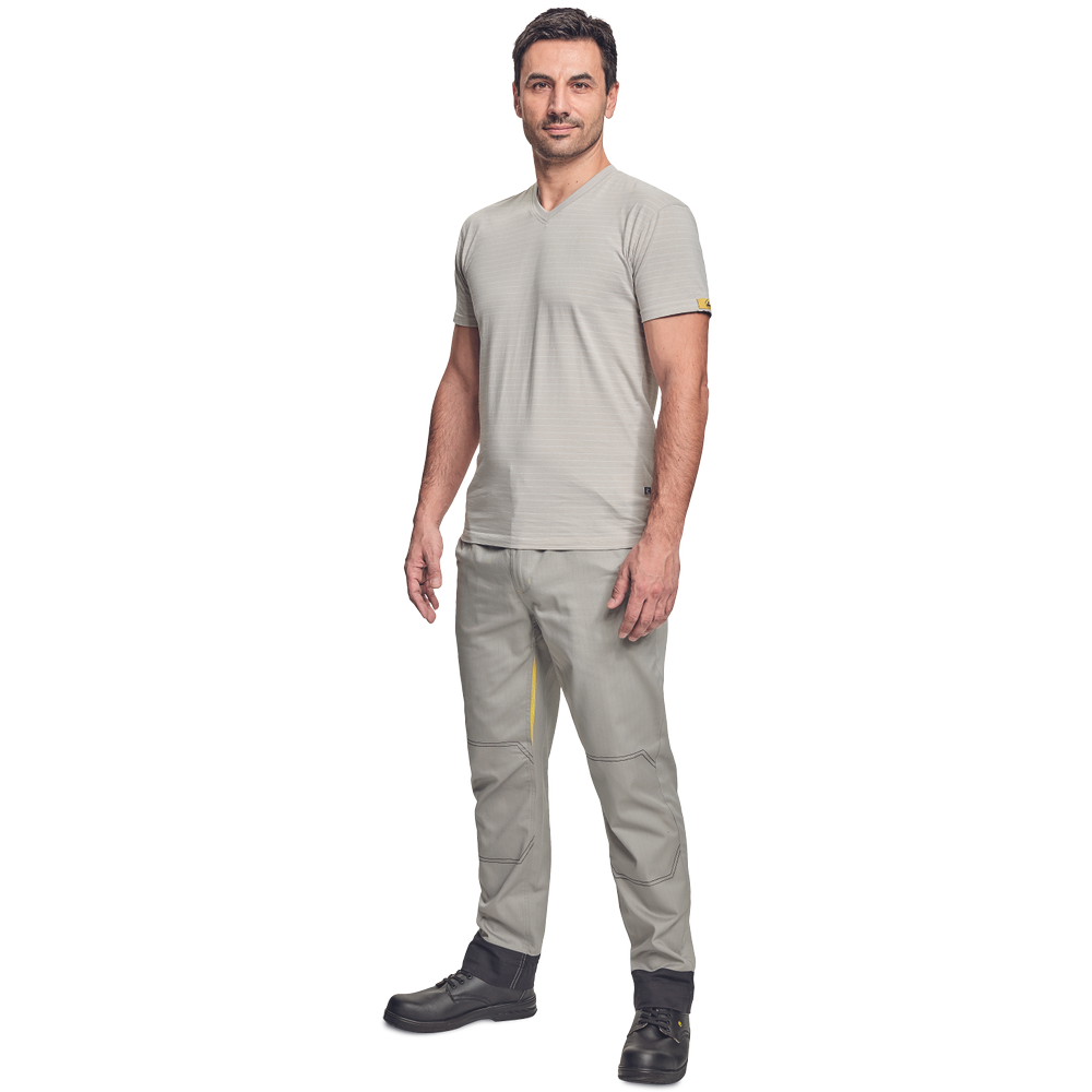 – ESD majica s kratkimi rokavi in V-izrezom iz bombažnega enojnega džersija z antistatičnimi vlakni – zagotavlja zaščito elektronskih naprav pred elektrostatičnimi vplivi – univerzalni kroj