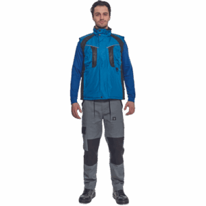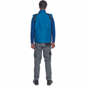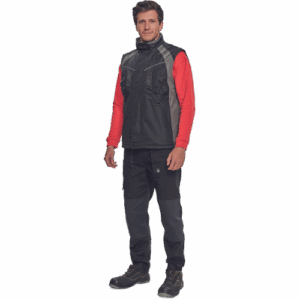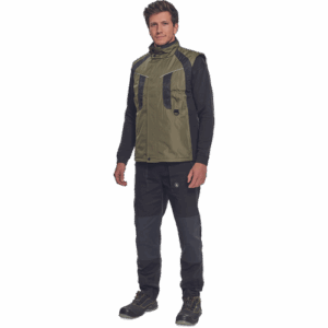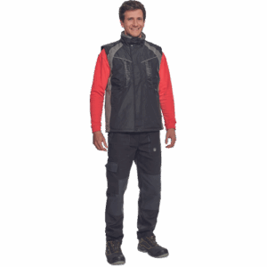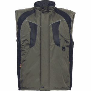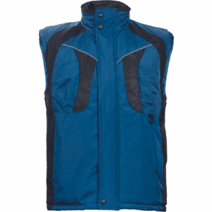 – termoizoliran nepremočljiv moški zimski telovnik, lepljeni šivi – zadrga s pokrovom – 2 stranska žepa, 2 prsna žepa – vrvica na spodnjem robu – odsevni elementi