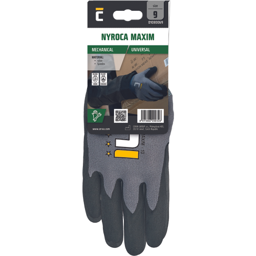 – rokavice iz najlona/lycra jerseyja, prepojene z mikropornim nitrilom – odlična prepustnost – zelo dober oprijem v suhem, mokrem in mastnem okolju